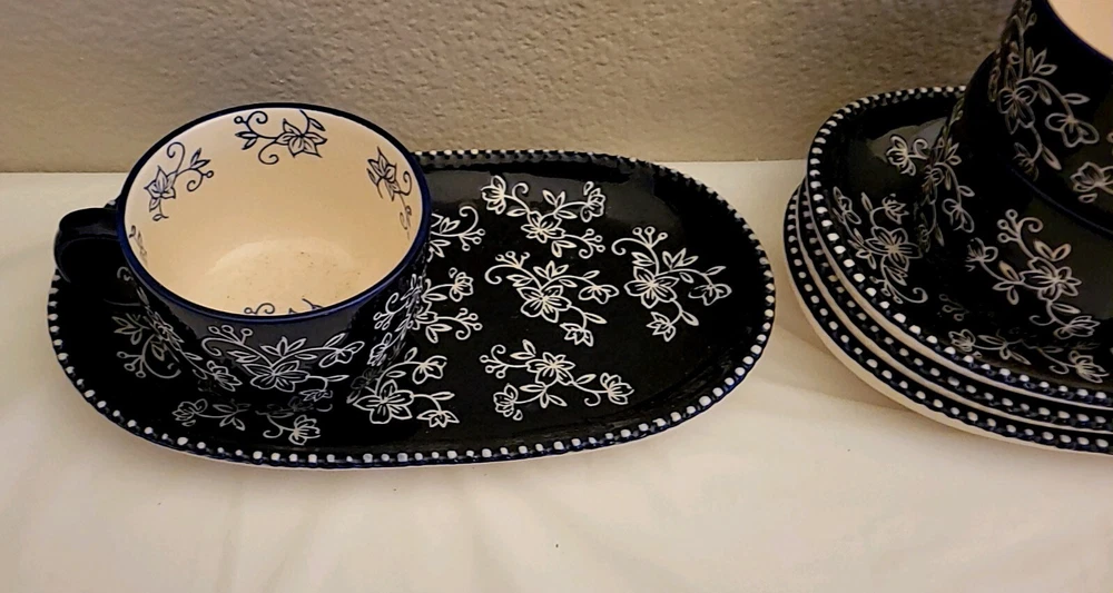 Add a touch of elegance to your dining table with this beautiful set of four cobalt blue floral soup bowls and sandwiches plates. The intricate floral pattern adds a charming touch to any occasion, whether it's a formal dinner party or a casual family gathering. Crafted from high-quality ceramic, these plates and bowls are durable and perfect for everyday use. The set includes eight pieces, with four soup bowls and four sandwiches plates, all of which are printed with a backstamp. The vintage design and flower theme make these plates and bowls a great addition to any collection. Made in China, this eight-piece set is perfect for all occasions and is sure to impress your guests.