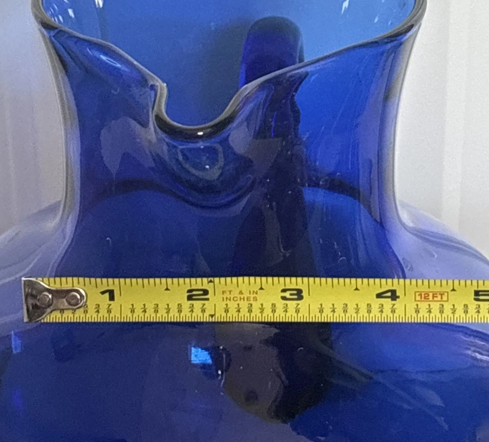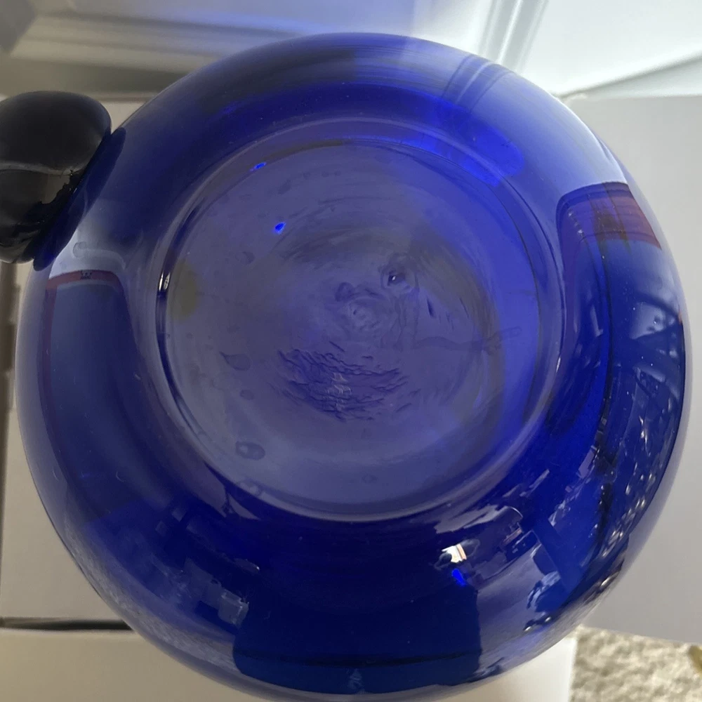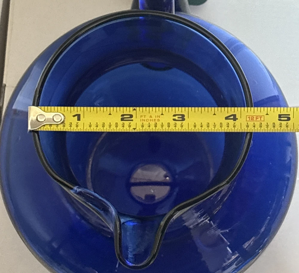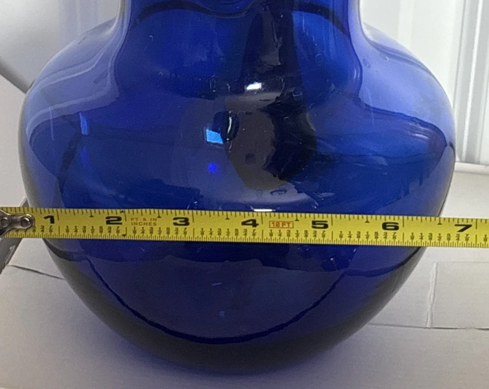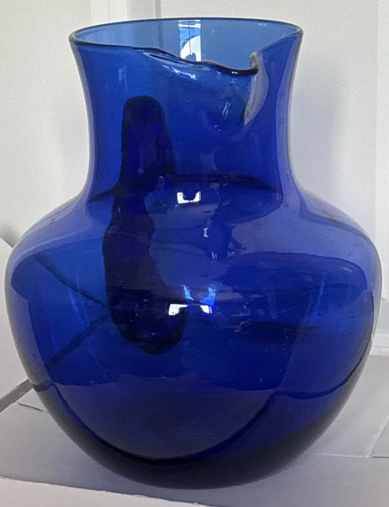 Beautiful cobalt blue pitcher with handle. See photos for size and details. Reach out with questions. Thank you!