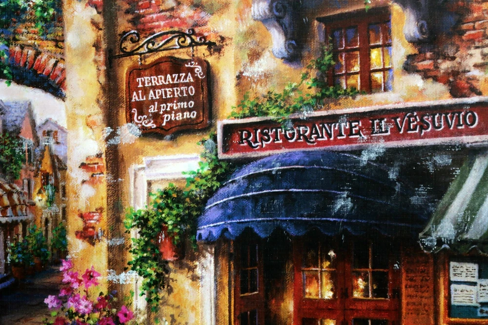 Indulge in the world of Italian cafes with the Cobble Hill Buon Appetito jigsaw puzzle. This 1000-piece puzzle features a colorful and intricate design that will transport you to the streets of Italy. Made of high-quality cardboard material, this puzzle is interlocking, coming from a smoke-free home, making it perfect for households. The puzzle is complete and measures 26 5/8" x 19 1/4" once assembled. It is suitable for ages 12 and up, and is a great addition to any puzzle collection. Enjoy the challenge and satisfaction of putting together this puzzle on your own, or bond with family and friends over a fun and engaging activity. Enjoy your meal. :-) Doing puzzles has some hidden benefits Excellent qualities : Cultivate concentration, patience, and temper your will Movement development : Train hand-eye coordination and precise small movements Spatial intelligence : Improve visual discrimination of colors and shapes Critical thinking ability : Understand the relationship between parts and the whole, and draw inferences from one example to explore the future Relaxes your mind : Relieve work pressure and release yourself Brain development : Enhance memory and may help prevent or slow brain degeneration * We did not work the puzzle or count the pieces, but we verify the number count at your request . Puzzle pieces are all bagged. Each item we ship is carefully packaged to prevent any damage and is shipped immediately with tracking. Anticipated Benefits of Puzzles for Children Overcoming attention deficit Strengthening visual memory Improving problem solving skills Strengthening hand-eye coordination Improve fine motor skills Improve gross motor skills Shape recognition ability Gain the ability of setting goals Learning patience