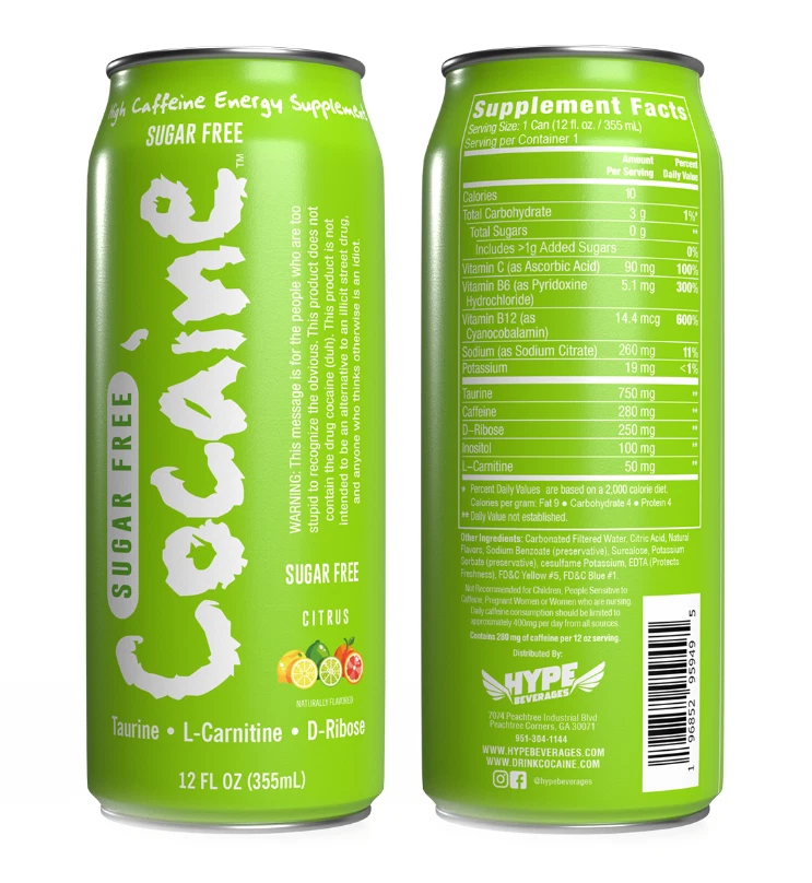 Unleash the power of intense energy with Cocaine Energy Supplement, the ultimate high-caffeine drink designed to fuel your day with maximum performance. Infused with a potent blend of energizing ingredients, this citrus-flavored energy drink offers a bold, refreshing taste that will leave your taste buds tingling. Perfect for those who need a quick, powerful pick-me-up, Cocaine Energy provides an immediate surge of energy, enhanced focus, and increased alertness. Whether you're tackling a busy day, pushing through a workout, or staying sharp for late-night tasks, Cocaine Energy is your go-to source for an uncompromising energy boost. High Caffeine Content : Packed with a potent dose of caffeine for fast-acting, sustained energy. Citrus Flavor : A crisp, zesty citrus taste that’s as invigorating as it is delicious. Instant Boost : Feel the effects quickly, helping you power through even the most demanding tasks. Focus & Alertness : Sharpen your mind and stay at the top of your game. Fuel your hustle with Cocaine Energy and experience the ultimate boost that takes you further.