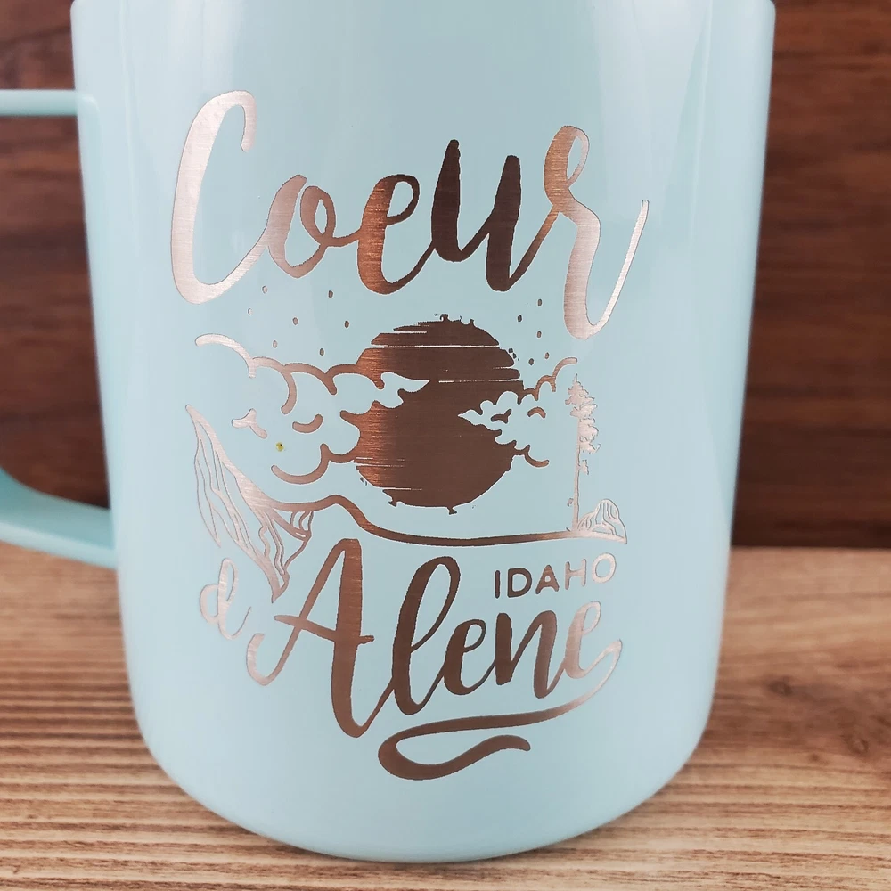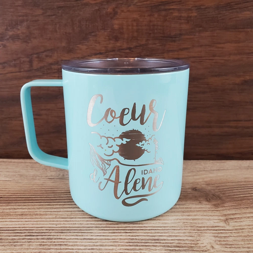 Coeur d' Alene CDA Idaho Maars Coffee Insulated Mug Press In Lid Teal 14 oz Excellent used condition. Please view the photos carefully for condition details. Don't forget to check out the other items in my shop. I'm getting in new fun things all the time. Thank you for looking! Have a great day!