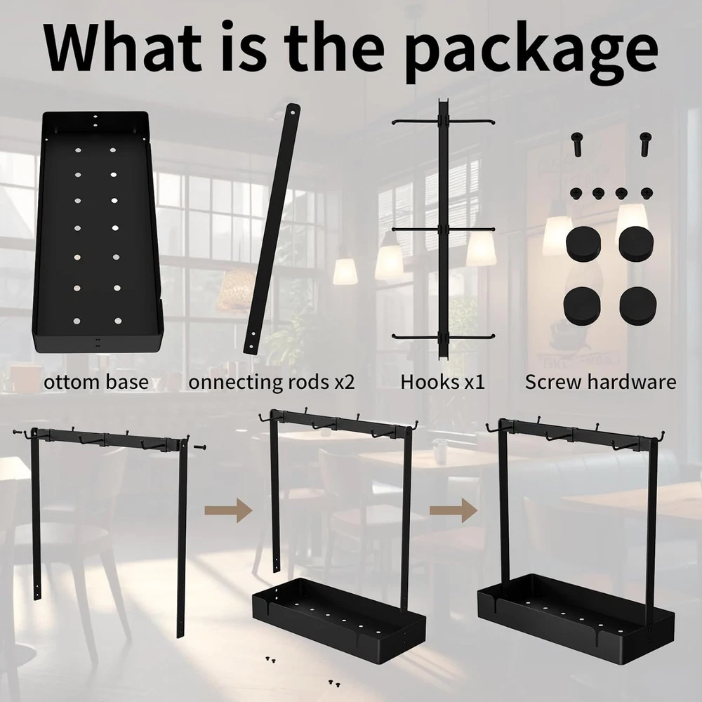 Store New Arrivals Add to Favorite View Feedback Contact Coffee Mug Holder Organizer with Movable Hooks, Coffee Cup Holder for Countertop, Metal Coffee Mug Tree Stand with Storage Basket, Cups Mug Rack for K Cup Pod Coffee Bar Kitchen, Black Description Style Industrial Batteries Included? No Room Type Kitchen Is Customizable No Assembly Required Yes Product Dimensions 6"D x 13.5"W x 14"H Material Alloy Steel, Aluminum Finish Type Powder Coated Included Components Accessories Indoor/Outdoor Usage Indoor Batteries Required? No Item Weight 1.5 pounds Finish Powder Coated Number of Shelves 1 Special Features Heavy Duty Special Feature Heavy Duty Mounting Type Countertop Shelf Type Cubby Shelf Color Black Shape Square Recommended Uses For Product Mugs Size 6Hooks 【Large Storage Coffee Mug Holder】 - 6 mug hooks and large capacity tray. RCHYFEED coffee cup organizer owns large capacity, the top shelf with hooks holds up to 6 coffee mugs. The bottom storage tray can hold various coffee beans, syrup, coffee cups, sugar bag, tea packet, creamer, snacks and other various items. A great coffee bar accessory. 【Movable Hooks】 - The coffee cups holder for countertop with 6 movable hooks. So you can adjust the position of the hooks according to the size of your cups. You can also remove unwanted hooks as needed to prevent hooks and cups from colliding. The bottom with drain hole can help drain and dry, avoiding generate harmful substances in humid environments.It is totally a perfect coffee mug display stand for your home. 【Sturdy and Durable】 -The coffee mug tree rack made of high quality aluminum alloy, provides you with stronger stability and durability. All movable hooks are made of high-quality metal to keep your coffee mugs securely in place. And the surface is smooth, with an anti-rust coating, and easy to clean.The bottom of our mug display holder is supported by 4 mini pads, which can prevent the rack from scratching the table. 【Space Saving】 - The tree mug racks holder not only give you a place to store your coffee cups, but also storage various items keep your table and kitchen well-organized. The black metal frame also has a strong vintage industrial style atmospher, suitable for kitchen counter, coffee table, cabinet display or storage, living room, dinning room, outdoor dinning table. 【Easy Installation】 - The mug cups holder needs to be assembled on your own, but do not worry about this. All of the necessary accessories are included in the package, with an instruction manual. After reading the instructions, you can finish the installation in a few minutes. If you have any questions with your purchase, please . Product Description Are you still worrying about your beloved cups being messy and nowhere to put it? RCHYFEED coffee mug rack holder not only give you a place to store your coffee cups, but also storage various items keep your table and kitchen well-organized. movable hooks You can adjust the position of the mug hooks according to the size of your cups, and all movable hooks are made of high-quality metal to keep your coffee mugs securely in place. Heavy Duty Metal Frame The coffee mug rack made of high quality aluminum alloy, provides you with stronger stability and durability. Large Storage Space The bottom storage tray can hold various coffee beans, coffee cups, sugar bag, tea packet, creamer, snacks and other various items. Sturdy Hooks The coffee cups holder organizer owns large capacity, the top shelf with hooks holds up to 6 coffee mugs. Bottom Drain Hole Design The bottom with drain hole can help drain and dry, avoiding generate harmful substances in humid environments. You can assemble the coffee cup holder with easy-to-understand installation instructions in a few minutes. Prefer Gift for Coffee Lovers Both in terms of practicality and appearance, this mug stand holder is a perfect gift for coffee lovers, also perfect for a new home or refreshing your kitchen. More Options for RCHYFEED coffee bar accessory Add to Cart Add to Cart Add to Cart Add to Cart Add to Cart Customer Reviews 4.7 out of 5 stars 166 4.7 out of 5 stars 166 4.2 out of 5 stars 73 4.7 out of 5 stars 166 4.5 out of 5 stars 39 Price $26.99 $ 26 . 99 $29.99 $ 29 . 99 $29.99 $ 29 . 99 $31.99 $ 31 . 99 $32.99 $ 32 . 99 Function Store mugs,cups,pods,tea bags Store mugs,cups,pods,tea bags Store mugs,cups,pods,tea bags Store mugs,cups,pods,tea bags store cups,lids, straws,sleeve Material Aluminum Alloy Aluminum Alloy Aluminum Alloy Metal Aluminum Alloy Size 5.9"D x 13.5"W x 14"H 5.9"D x 16.5"W x 17.3"H 5.5"D x 16.5"W x 16.7"H 9.84"L x 9.84"L x 17.32"H 13.46"D x 5.9"W x 6.5"H Features Adjustable hooks,bottom tray Adjustable hooks,bottom tray Wall mounted,adjustable hooks 360 Degree rotating Height adjustable,bottom tray Easy Installation Yes Yes Yes Yes Yes ABOUT US We offer the best prices around on high quality products. Our E-store includes media such as books, movies, music and games while offering electronics, toys, sporting apparel, clothing, tools, general home, garden items and more. SHIPPING We are always working hard to ensure your package arrives as soon as possible. Please understand that some factors like weather, high postal traffic, and the performance of shipping companies are outside of our control. We offer free shipping to the lower 48 states and ship within 2 business days of payment, usually sooner. We do not accept P.O. Boxes. Please provide a physical address. For shipping outside of the continental USA, we only use eBay's Global Shipping Program.The item is shipped to KY and then sent to the rest of the world. International customers are responsible for all duties and taxes. Continue to check out in order to calculate costs for shipping the item to your country. Messages regarding eBay's Global Shipping Program MUST be directed at eBay EXCLUSIVELY. RETURNS We offer a 30-Day Return Policy on items which you are not completely satisfied with. You have the option for a fu