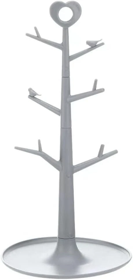About this item Material: The Mug tree is made of high quality plastic which is Anti-rust and beautiful.There is no need to worry about hand or cup scratching. The large round base is sturdy and stable. Sizes: The sizes of the mug holder are 3.3(L) x 3.3 (W) x 14.2 (H)inches. It’s the perfect size to sit on a countertop without taking too much space. Hold up to 6 mugs or cups. Stylish Home Decoration: The stylish design of the coffee stand makes your countertop tiny and clean.Eye-catching heart design on the top is an ideal decoration for your table counter. Muti-functional:You can use it as a dry cup stand ,storing, displaying for coffee cups, teacups,glass and more. You can display it on the countertop,living room,kitchen, coffee station, coffee bar, office. Great Gift: A nice present for Birthday,Mother's day and Father's Day etc.Ideal gift for coffee lovers,mug lovers