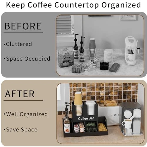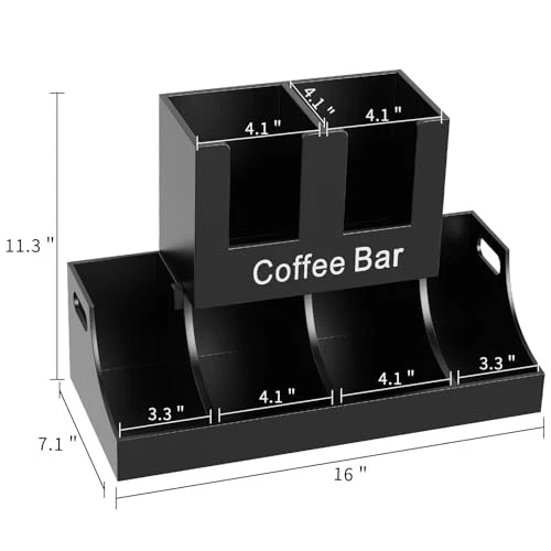 Return Policy Fast Delivery Trusted seller Coffee Station Organizer, Wooden Coffee Bar Organizer for Countertop, Coffee Condiment and Cup Storage Organizer, Coffee Bar Accessories for Kitchen, Office, Home, Black Product Description Versatile storage solution: The coffee station organizer can hold up to 25.4 ounces of syrup bottles, coffee pods, sugar, stirrers, cups, and lids, making it the great coffee bar accessories and organizer for any coffee station, kitchen, office Efficient organization: The layered design of the coffee organizer station keeps everything organized, and you can easily access and view all coffee bar accessories, saving you time Sturdy and Easy to Clean: Made of solid wood, the coffee bar organizer is sturdy and can be easily cleaned with wet wipes, ensuring long-term use. Its dimensions are 16 inches x 7 inches x 11.3 inches, making the most of your countertop space Stylish Decor: The coffee organizer has a stylish design that adds an elegant touch to any environment. It blends seamlessly with most interior decors, it is suitable for offices, homes, cafes Easy to Assemble: The coffee pod holder comes with instructions. Just insert the wooden board into the bottom tray one by one and fix it with 2 screws at the end. It won't shake. The caddy is equipped with handle, which can be easily carried to any location Shipping Returns Payment Shipping Shipping is FREE to all addresses other than APO/PO boxes in the lower 48 states. All our stock ships from US-based warehouses. Shipped via USPS or UPS (depending on location and package weight) Unless stated otherwise, all orders will ship within 24-72 hours of your payment being processed. Check our feedback to see the great reviews of FAST shipping we offer. Returns Seller does not accept returns Payment We currently accept payment via eBay managed payments only. Once payment is cleared, we will dispatch your shipment within 1-3 business days. Please refer to the "Shipping" tab for more information regarding shipping speed to your destination.
