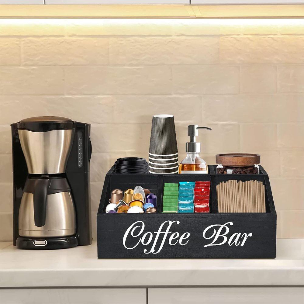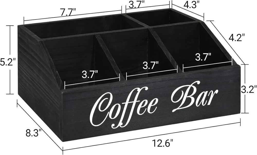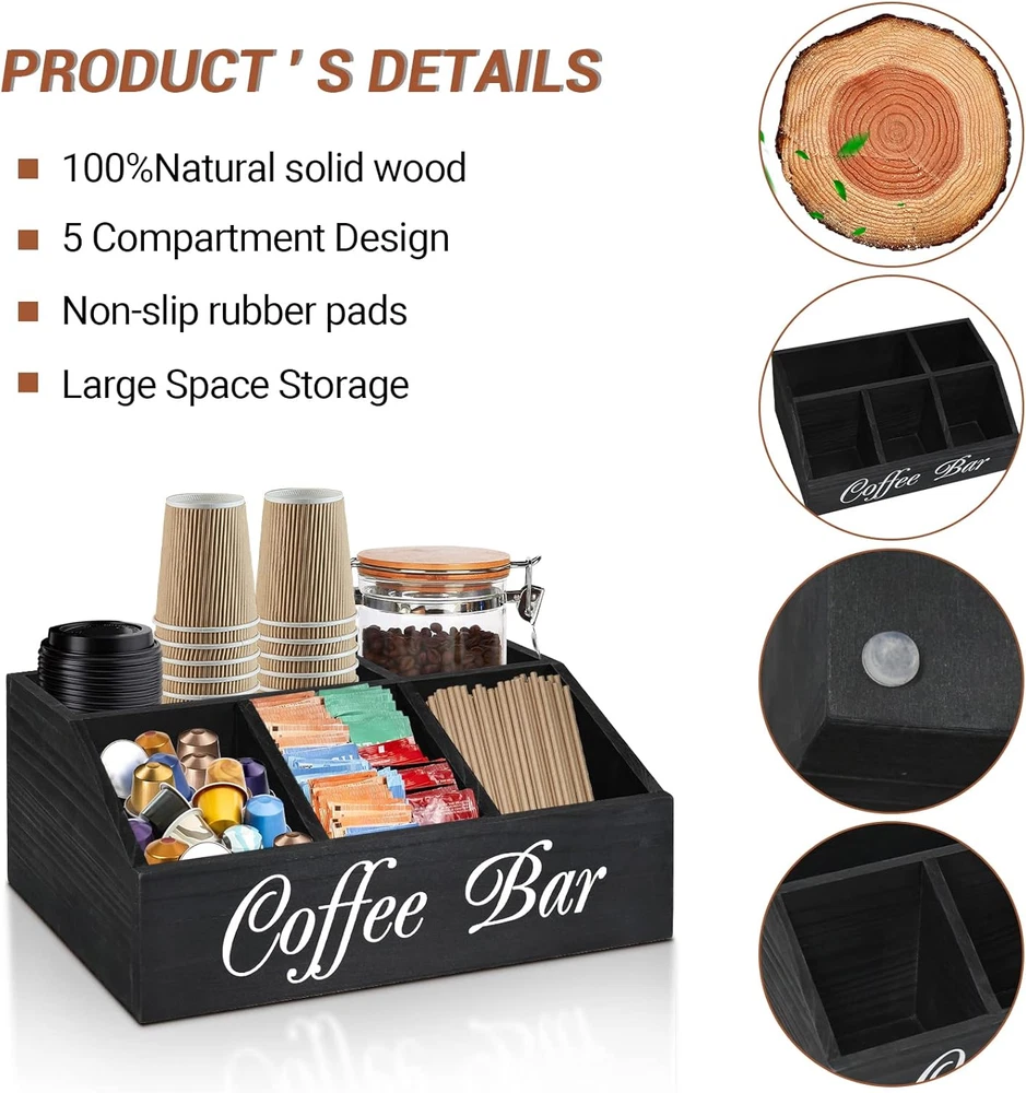 Store New Arrivals Add to Favorite View Feedback Contact Coffee Station Organizer for Counter, Wood Coffee Pods Holder Storage Basket, Tea Condiment Storage Organizer, Rustic Bar Decor for Accessories Organizer Description Item model number 25487 Unit Count 23.52 Ounce Style Farmhouse Finish Coffee Capacity 543.82 Cubic Inches Color Black Product Dimensions 12.8"L x 8.3"W x 5.1"H Material Wood Shape Rectangular Item Weight 1.5 Pounds Handle Material Wood Batteries Included? No Batteries Required? No Finish Type Coffee Number Of Pieces 1 COFFEE STATION ORGANIZER: The simple design provide a multifunctional coffee station organizer perfect for creating a clean and organized coffee space. This coffee bar organizer has 5 spacious compartments, the front 3 large capacity compartments can be used to store coffee pods, sugar, tea bags, instant coffee and more, and the rear two compartments have enough height to store your stack Coffee cups, straws, stir sticks, canned coffee beans, etc. SPECIAL RAMP DESIGN: There are many coffee bar organizers on the website, but you must not have seen the same as ours! The bottom at the front 3 compartment of the coffee bar organizer is tilted, this is our designers exclusive creation of special design accord with human body mechanics: it allows you to easily access and place your coffee accessories, when coffee pods are about to be used up, there is no need to stretch your hand to the bottom to get it, which is not available in others! WIDE APPLICATION COFFEE STATION ORGANIZER: Ideal for use on home kitchen counters, office lounge areas, restaurants or hotel lobbies, this coffee station organizer allows coffee or tea to be easily organized and replenished as needed (placed in coffee pots, hot water, snack machines, or where people gather to eat) area). It is also suitable for staff and university dormitories, which are used in common areas where coffee, tea, hot chocolate and hot water are provided in the dormitory. RELIABLE MATERIAL AND EASY CLEAN: Our coffee station organizer is made of 100% solid wood, which is sturdy and odorless. With a food-grade coating on the surface, you can put your coffee items in the box with confidence. With a unique high-capacity design and minimalist color construction, our coffee bar organizer is a great coffee bar decorating box that matches a variety of home decor styles. Very easy to care for: wipe gently with a soft, clean damp cloth. For best results, keep dry. 100% SATISFACTORY SERVICE: We are always committed to provide high quality coffee station organizer and providing customers with satisfactory products is our mission. In case any problem or you are not satisfied before your purchasing, during your purchasing or using our coffee pods holder storage basket, please tell us without hesitation, we will try our best to solve your problem. Your email will be replied to within 24 hours! Product description Wood Coffee Station Organizer for Counter Real Shot Video The video showcases the product in use. The video guides you through product setup. The video compares multiple products. The video shows the product being unpacked. three colors of coffee station organizer Merchant Video Why Choose Our Farmhouse Coffee Bar Organizer Before and After Comparison Perfect for Your Coffee Accessories The Choice of Thousands of Customers! Good Gift Choices ABOUT US We offer the best prices around on high quality products. Our E-store includes media such as books, movies, music and games while offering electronics, toys, sporting apparel, clothing, tools, general home, garden items and more. SHIPPING We are always working hard to ensure your package arrives as soon as possible. Please understand that some factors like weather, high postal traffic, and the performance of shipping companies are outside of our control. We offer free shipping to the lower 48 states and ship within 2 business days of payment, usually sooner. We do not accept P.O. Boxes. Please provide a physical address. RETURNS We offer a 30-Day Return Policy on items which you are not completely satisfied with. You have the option for a full-refund or an exchange of the item. No returns are available on items shipped outside of the USA. PAYMENT We accept PayPal. CONTACT US This page content is yet to come Please ad us to your favorite seller and visit again later Thank You CUSTOMER SATISFACTION We try our very best to make sure every customer is completely satisfied. If there's a problem, message us! We're happy to help.