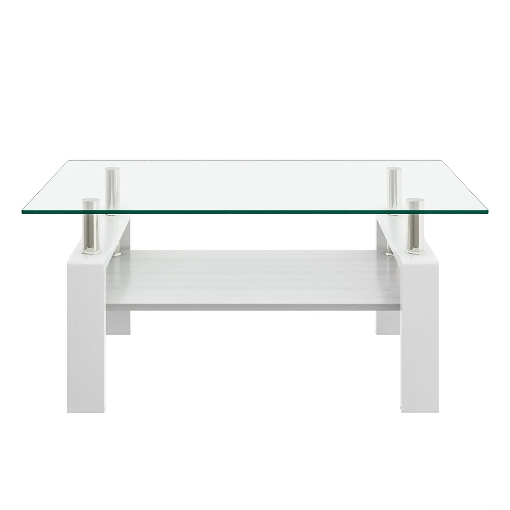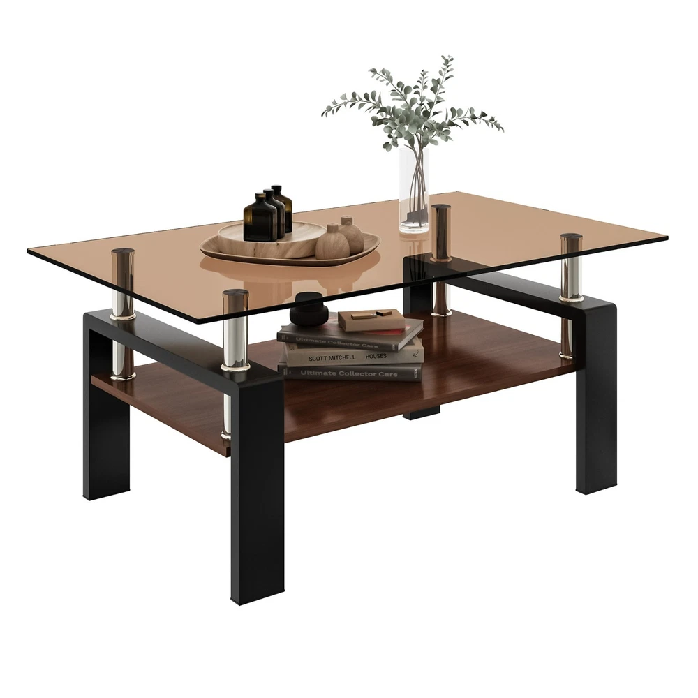 Features and Details: Sleek Tempered Glass Surface: This coffee table boasts a modern tempered glass top that not only exudes style but is also effortless to clean, perfect for daily use. Smooth Edge Treatment: Tempered glass has smooth edges that can protect your safety. Durable Iron Leg Support: Supported by robust iron legs, this table strikes the perfect balance between strength and aesthetics, ensuring stability and longevity. Convenient Storage Space: With a sturdy MDF layer, this table offers ample room for essentials, providing a practical and organized solution for your living space. Easy Assembly: Designed for effortless setup, this coffee table includes straightforward assembly instructions, making it a breeze to put together in no time. Specification: Material:Tempered Glass Item Size: 39.2"L x 23.4"W x 17.7"H Item Weight (lbs.): 42.10 / 43.65 Load-bearing Capacity: 220lbs.