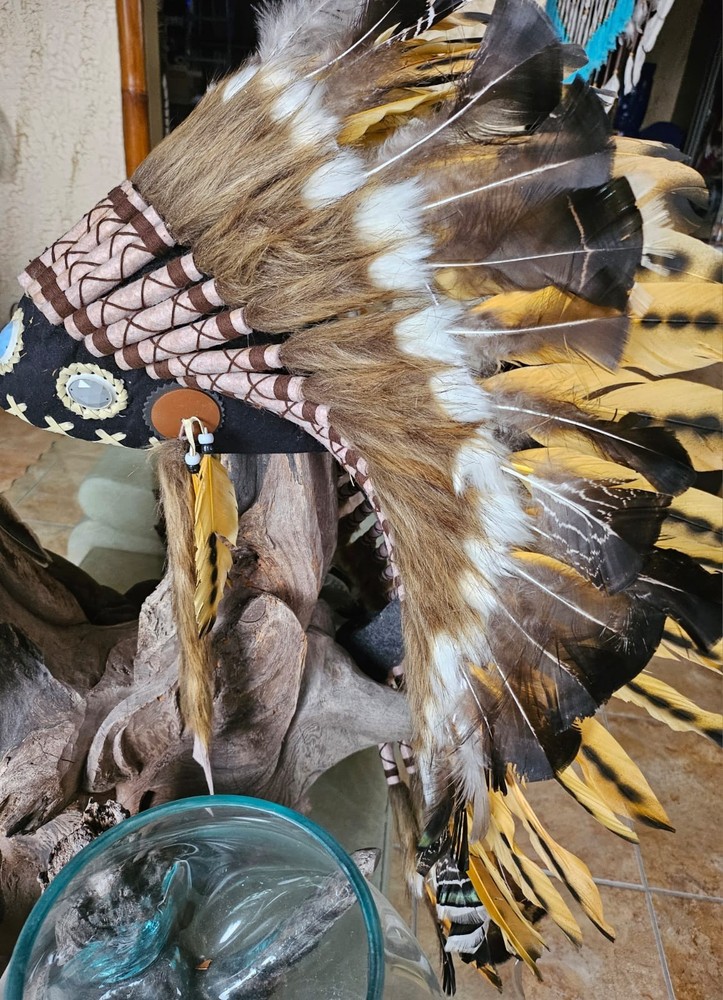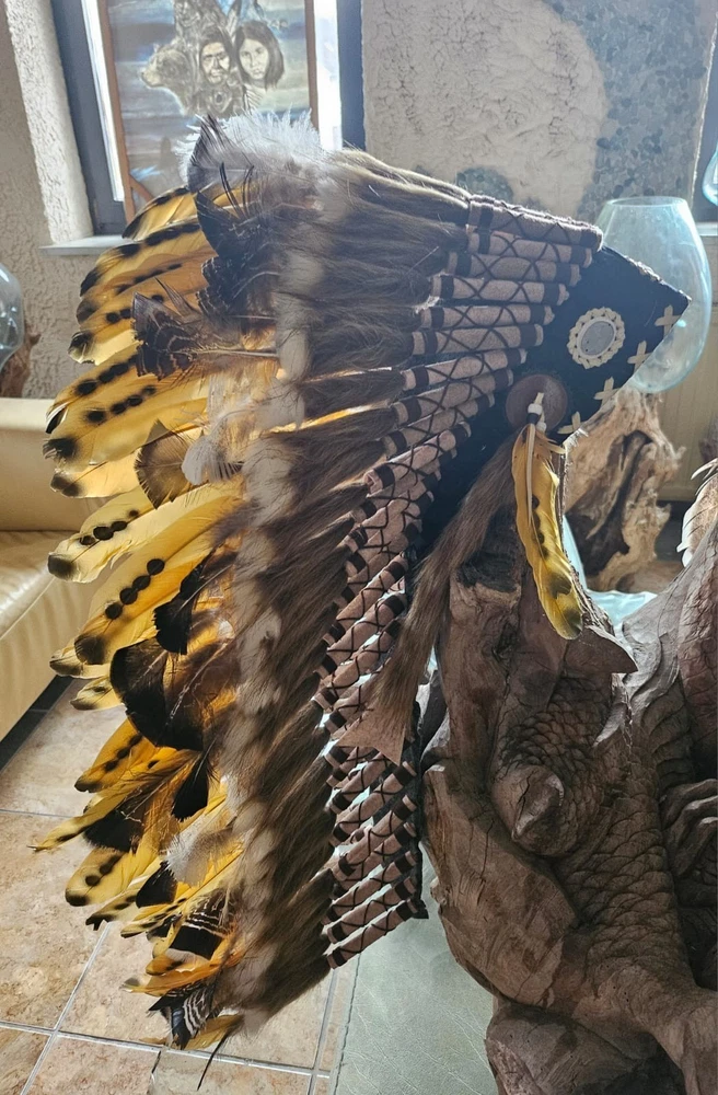 LITTLE BIG HORN THE NEW COLLECTION Beautiful war bonnets Based upon legendary design and the old ways of the indigenous people of Northern America our war bonnets provide you an idea of those days when native pieces of art were part of a life in harmony with nature War bonnet (handmade) Feel the softness of the feathers and become one with an inspiring experience A warbonnet, also called a feather bonnet, is a traditional headdress of the North American Plains Indians. It is a symbol of power, bravery, and honour worn by highly respected warriors and chiefs and had to be earned through special achievements in battle or other outstanding deeds. AAA Because it is handmade items can, colors and design be slightly different from the picture. You have any questions? Please give us a call or send us a mail. We will be happy to help you. Hablamos Español ******