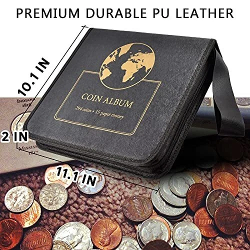 Return Policy Fast Delivery Trusted seller Coin Collection Supplies Pages for Collectors, 12 Sheets Coins Holder Album Book Sleeves, Collecting Binder Protectors for Silver Dollar Bill Quarters Penny Stamp Currency (294 Pockets) Product Description COIN BINDER COLLECTION WITH WRIST- 294 pockets for 20mm~45mm Coins, 30mm pockets *84, 35mm pockets *150, 45mm pockets *60 & 15 sleeves 7*3.5 inches dollars organizer for collectors. 3 sizes perfect collected coins and paper currency for the many countries. The binder album size: 10.2*11.2*2.2 inches. COIN HOLDERS FOR COLLECTORS- D-type stainless steel page holder for large capacity. You can increase the number of pages at will. The coin pages are great because we have the little flap on the back to prevent the coins from falling out (if turned upside down). COIN COLLECTION SUPPLIES- you can put your bigger, half dollar coins and paper currency them all in one secure place. without worrying about dirt, dust, splashes, bumps, or scratches. PAPER CURRENCY COLLECTION HOLDER- The pocket pages that hold the banknotes are upgraded plastic. Not like other’s which pockets soft. The pocket is a Premium transparent plastic sheet. Each pocket can hold 2 banknotes. Both front and back can be displayed. MONEY COLLECTION BOOK- Sturdy and sleeves are perfect size for dollars. collects foreign currency will be easy and pro. Not only for the pro collectors,also as a gift for your kids collecting. Shipping Returns Payment Shipping Shipping is FREE to all addresses other than APO/PO boxes in the lower 48 states. All our stock ships from US-based warehouses. Shipped via USPS or UPS (depending on location and package weight) Unless stated otherwise, all orders will ship within 24-72 hours of your payment being processed. Check our feedback to see the great reviews of FAST shipping we offer. Returns Seller does not accept returns Payment We currently accept payment via eBay managed payments only. Once payment is cleared, we will dispatch your shipment within 1-3 business days. Please refer to the "Shipping" tab for more information regarding shipping speed to your destination.