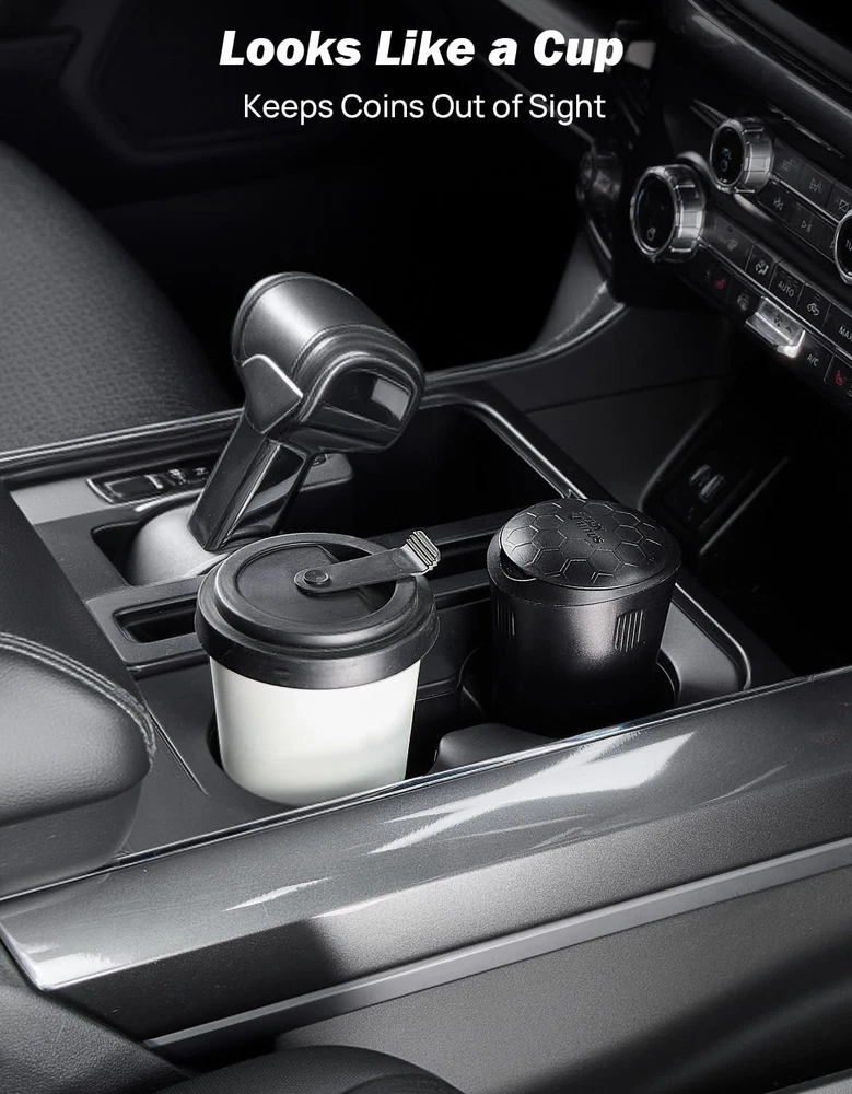 Coin Holder for Car, Larger-Capacity Car Change Holder Organizer, Universal Car Coin Holder for Cup Holder, Coin Dispenser Storage Fit Most Car & Trucks Car Accessories(Black, 1 Pack) 【Universal Fit】: This convenient coin organizer is compatible with any vehicle. Its cylindrical design is crafted to fit snugly into your car's cup holder, keeping your change neat and accessible while you're on the go. 【Generous Capacity】: Say goodbye to loose change clutter! Our car coin holder accommodates up to $23 in coins, featuring dedicated spaces for 54 quarters, 48 nickels, 70 dimes, and 62 pennies. Designed with precision, each slot is tailored specifically for American coins. 【Versatile Use】: Not just for the car! This coin holder is perfect for your office, home, or anywhere you need to organize coins. Save time and increase efficiency by sorting your change in style. 【Durable Quality】: Made from high-quality ABS plastic and robust springs, our coin dispenser is built to last. With professional research and development behind it, you can trust that this change organizer will stand up to daily use without frustration. 【Exceptional Support】: We prioritize your satisfaction. Our rigorous testing ensures every coin holder meets our high standards. If you have any questions or concerns, please reach out to our dedicated customer service team.