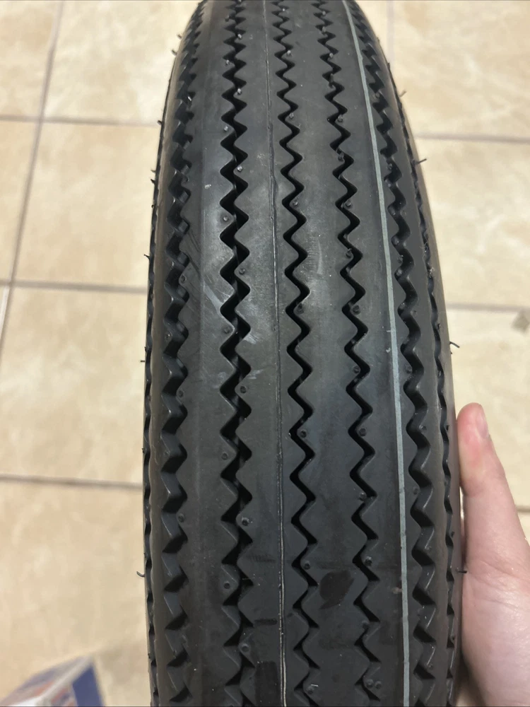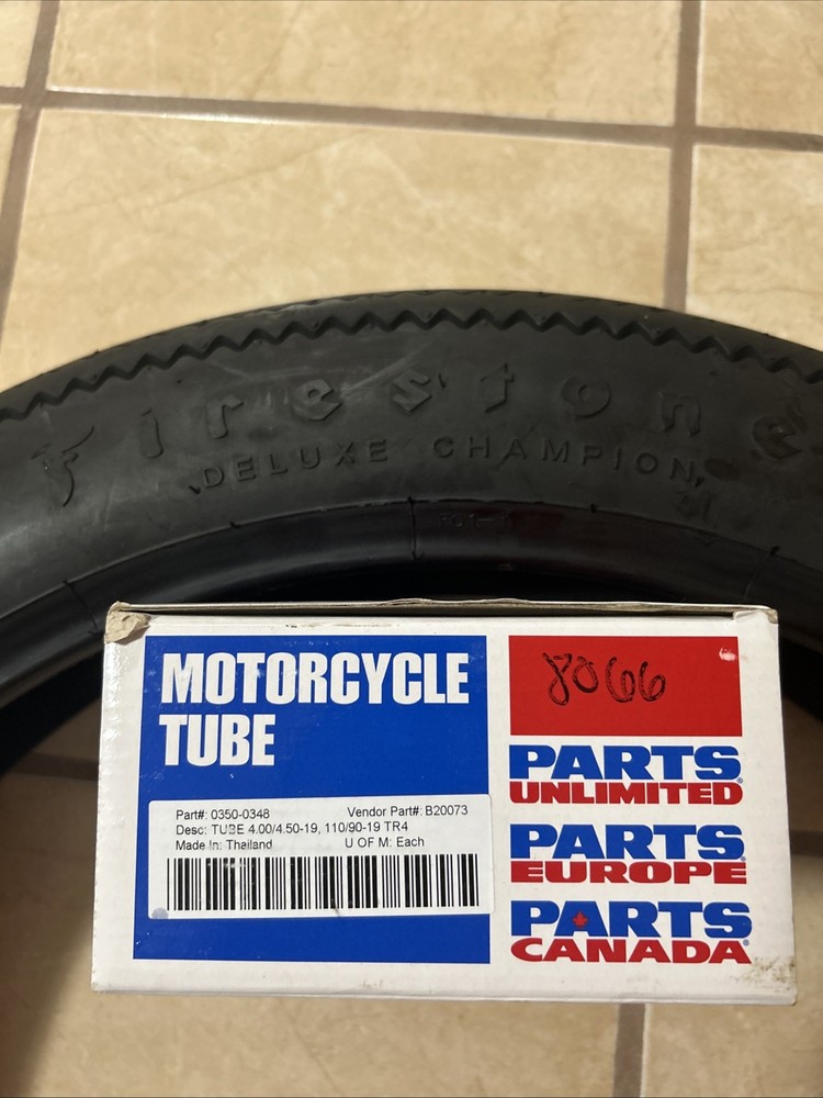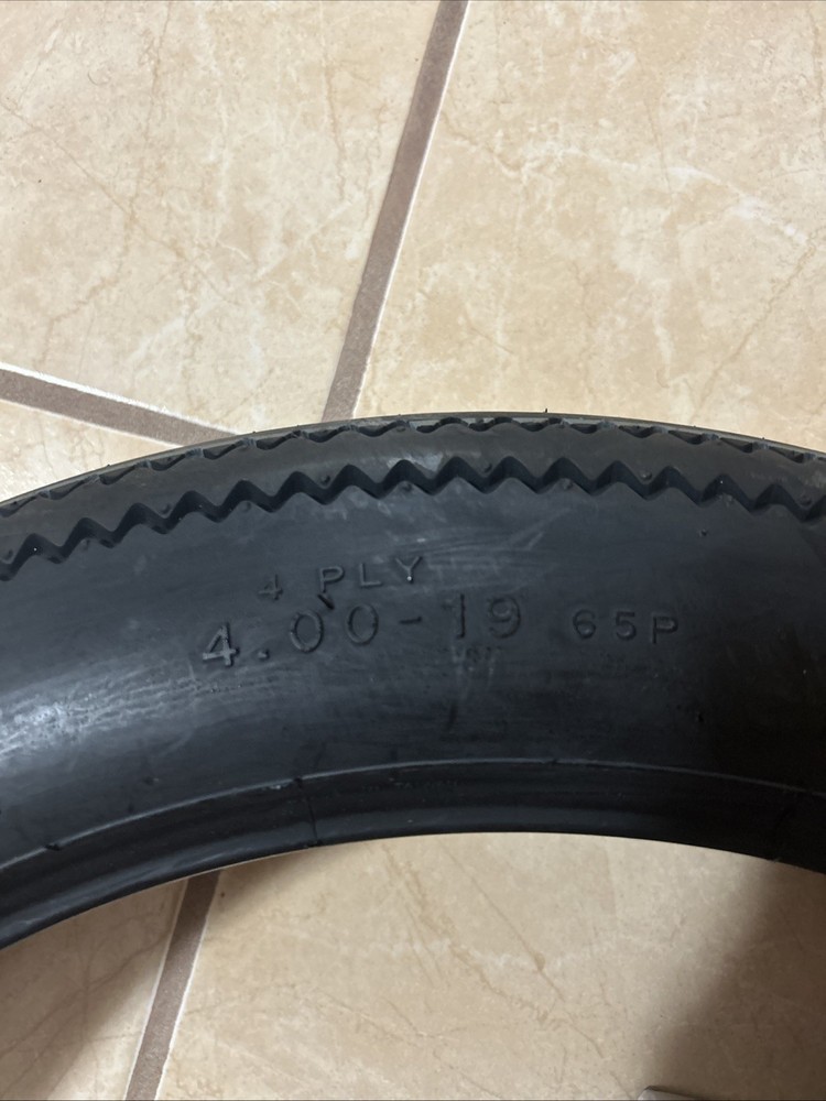 Like many of the tires we offer, Firestone 400-19 Deluxe Champion motorcycle tires serve two purposes. It's an authentic 4.00-19 motorcycle tire for American motorcycle restorations from the 1930s and '40s, and it also appeals to custom motorcycle builders seeking the vintage look. The deep tread and smooth sidewall with raised black Firestone lettering is perfect for many styles of motorcycles, from stock Harley Davidson's to modified Honda, BSA, Triumph and many more! Firestone Deluxe Champion motorcycle tires are becoming insanely popular fitments with custom bike builders around the world. The vintage motorcycle tires Firestone offers in the Deluxe Champion line are just a part of the most extensive line of collector tires in the world. Section width (actual): 4.25 Overall diameter: 27.59 Speed rating: 65P Rim diameter: 19 Rim width: 2.15 Tube type or tubeless: tube type It will come with the extra tube.