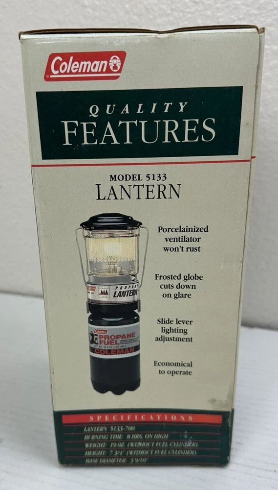 I’m selling this is open box new (Other) due to the fact that I took it out for pictures This is Coleman Ultra Light Propane Lantern Model 5133 Vintage Box New Unused OPEN BOX. Please see all pictures for condition. Due to age the box has some wear.