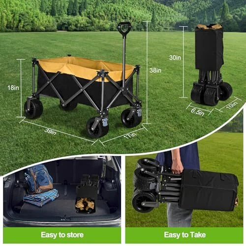 Return Policy Fast Delivery Trusted seller Collapsible Wagon - Foldable Beach Cart Large Capacity with All-Terrain Wheels, Heavy Duty Outdoors Utility Wagon for Camping, Sports, Garden and Shopping Product Description Multifunctional Cart: Whether sports games, fishing, family camping trips, beach days out, or having an outdoor picnic, this collapsible grocery wagon will be your ideal fatigue-free companion. You can reduce your handling fatigue, and fully enjoy the outdoor fun. All-Terrain Wheels: Four 3.9-inch wheels, 360° swivel front wheels, equipped with silent, this folding wagon is unlike most narrow-wheeled carts in the market. It is an ideal choice for navigating diverse terrains, including firm sand, rocks, grass, and mud. Moreover, with brakes that allow you to lock the cart and prevent slipping on slopes easily. Sturdy and Reliable: This utility wagon made of 600D Oxford fabric with PVC coating, waterproof, tear-resistant, and heavy-duty metal frame, triangular structure, it supports up to 250lbs, loads up to 330lbs at rest. The spacious interior volume and surprising loading capacity, are built to withstand daily use and various environmental conditions. Adjustable Handle: The handle length of this folding garden cart can be extended from 26 inch to 36.6 inch. The angle also can rotate as smoothly as you need. The handle locks in place with a joint so no need to worry about it dropping or the cart out-of-control. Easy to Fold and Store: Dimensions unfolded: 18.5"×17.7"×39.4"; Dimensions folded: 9.8"×6.7"×29". This wagon’s compact design folds into a mini size effortlessly with one hand, saves time & space, and carries it anyw conveniently. The fabric is easy to disassemble for deep cleaning and maintenance. Shipping Returns Payment Shipping Shipping is FREE to all addresses other than APO/PO boxes in the lower 48 states. All our stock ships from US-based warehouses. Shipped via USPS or UPS (depending on location and package weight) Unless stated otherwise, all orders will ship within 24-72 hours of your payment being processed. Check our feedback to see the great reviews of FAST shipping we offer. Returns Seller does not accept returns Payment We currently accept payment via eBay managed payments only. Once payment is cleared, we will dispatch your shipment within 1-3 business days. Please refer to the "Shipping" tab for more information regarding shipping speed to your destination.