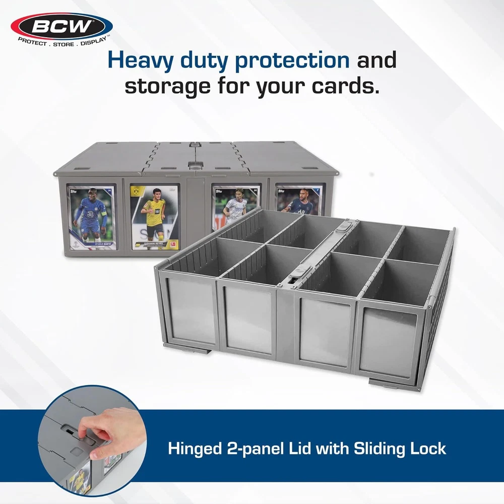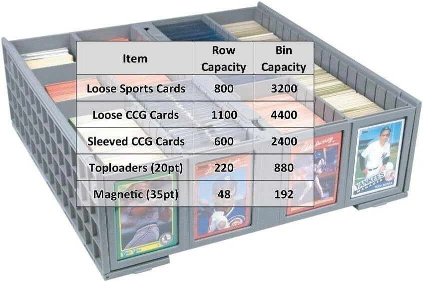 Product Description Collectible Card Bin - Single Gray | Storage Box for Trading Cards | Holds 3200 Cards | Includes 4 Card Storage Partitions | Loose Trading Card Storage for Pokemon, MTG, and Sports Cards Durable Plastic Construction: Unlike cardboard counterparts, the card bin is constructed from acid-free plastic, ensuring durability and longevity. Rest assured that your collection is stored in a solid and dependable container. Dual Hinged Lids: This trading card organizer comes with a pair of hinged lids for easy access; latches keep lids securely closed, safeguarding your cards. These hinged lids conveniently tuck under the card storage box when the bin is open. Stackable Design: The card organizer box is designed for efficiency. Stack multiple bins securely, thanks to the feet on the bottom that rest in the lid of the box below, preventing any unwanted sliding. Each card storage case will hold 3200 cards. Rows with Partitions: Rows feature notches along the top for easy placement of partitions, providing customizable organization. Rows are wide enough to hold toploaders, magnetics, and deck boxes, providing flexibility for different types of cards. Exterior Slots for Toploaders: This trading card box is specially designed exterior slots to easily mark the contents of each row for quick identification. Store baseball cards, naruto cards, pokemon cards and any other card your heart desires. About Us We are a reputable seller with many years of experience selling on eBay. Our goal is to provide high-quality products and excellent customer service. Payment 1.We accept PayPal only. 2.All major credit cards are accepted through secure payment processor PayPal. 3.Payment must be received within 7 business days of auction closing. 4.We ship to your eBay or Paypal address. Please make sure your eBay and Paypal address is correct before you pay. Feedback will be left automatically after we receive your feedback. Please contact us before leaving a Negative feedback or Neutral feedback. We would try our best to help you solving any problem. Shipping Items will be shipped within 1-3 business days when we received payment. (Orders are not processed on weekends & holidays) Tracking information will be sent once item is shipped. Delivery time depends on destination and other factors Item is shipped to ebay address. Leaving correct address can minimize delay. For international shipping and shipping to Guam, Hawaii and Alaska, Please contact us before placing the order. International buyers please note: Import duties, taxes and charges are not included in the item price or shipping charges. These charges are buyer’s responsibility. We will try our best to reduce the risk of the custom duties. Local pick-up is unavailable at the moment. Returns For any issues with Defects, Return, Item Exchange request, please contact us first and send us a message first before opening any type of case or request. We devote ourselves making EVERY CUSTOMER in 100% Satisfactory and resolve any problem. We highly value and appreciate your business. Thank you. No returns will be accepted without an RMA number. Please contact us for the RMA number. Return is acceptable within 30 days of delivery. Return for replacement or money back is optional. Returned items must be in the brand new, unaltered and resalable condition. Seller is not responsible for any labor cost, expense in a dealer store, or damage due to wrong installation. Contact Us We reply any email messages within 1 business / working days(off-duty at weekend). If you do not get a response from us, then please check your junk or spam mailbox. Our Business hours: Mon-Fri 9:00-18:00, UTC/GMT +8 hours. Please contact us either by clicking "contact seller" in the "purchase history" section or simply click "ask a question" at the bottom of this page. If you are unsatisfied with our item or service, please contact us before leaving any feedback. We are committed to resolve all issues in a friendly and satisfactory manner. powered by