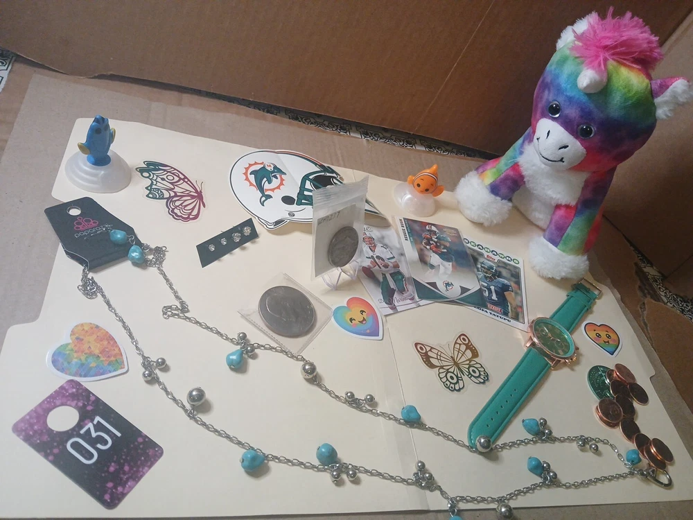Lot #68 is a Disposable Me4 toy lot 5 new toys n box plushy ×3 and a cute new bracelet