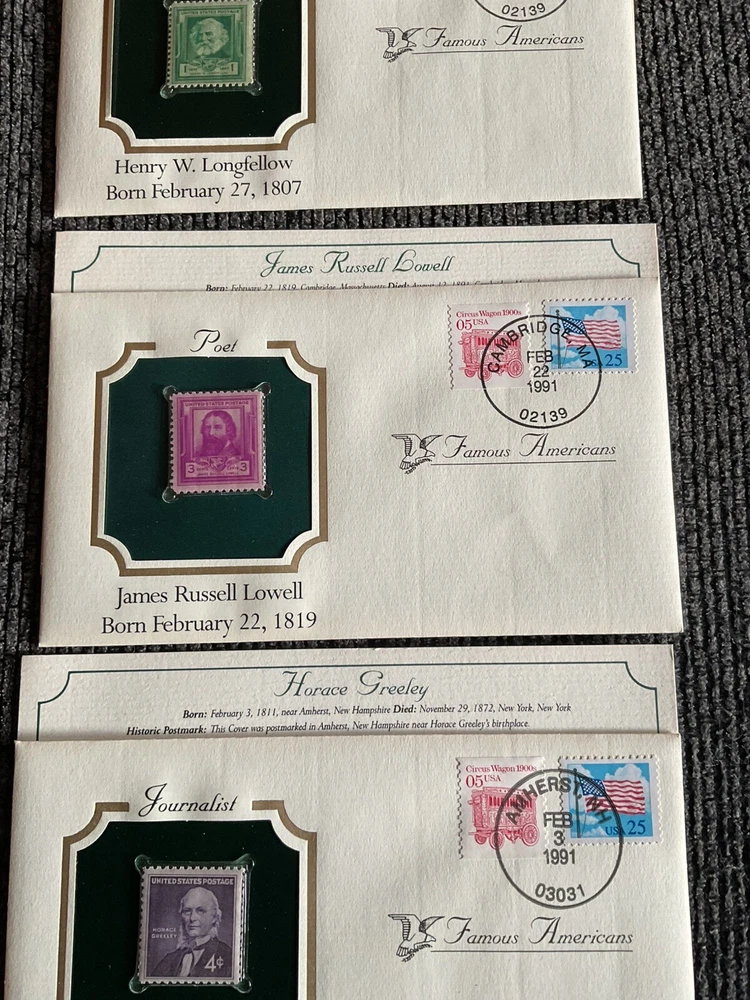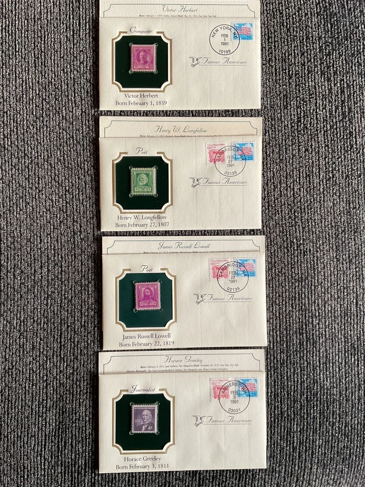 Stunning lot from the postal commemorative society, famous Americans, beautiful content on these envelopes. Own a piece of history.