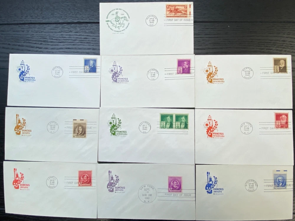 Collection of 58 1930's House of Farnam cachet First Day covers Famous Americans, Army Navy Heros, Pony Express and more. There are a few 1940's and the Army navy hero set is opened on the left side with some top left corner separation. This set is more of a throw in.