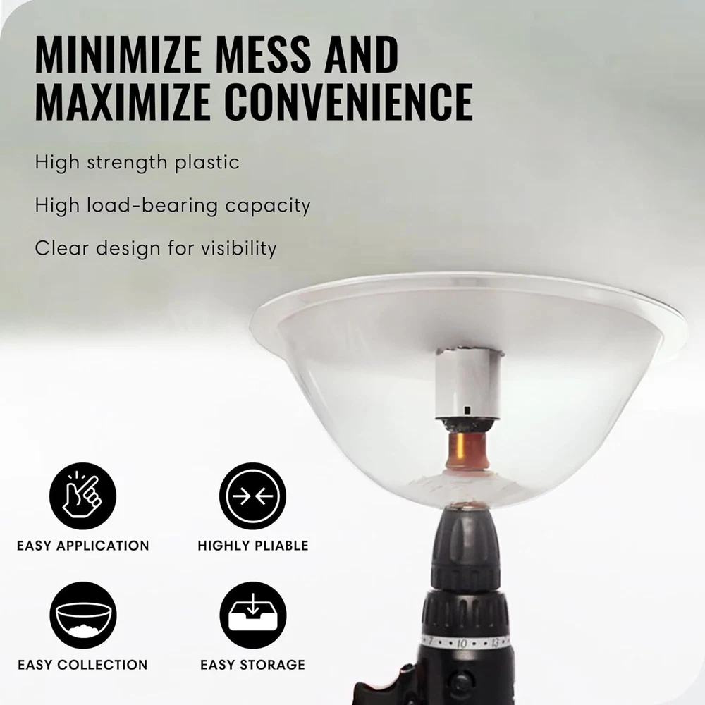 Product Description Hole Saw Dust Bowl, Flexible Plastic Drilling Saw Dust Collector, Collects Dust When Drilling Holes for Recessed Lights, Universal Hole Saw Accessories, Clear Design, 4 Pack Say Goodbye to Drilling Dust & Debris: Our hole saw dust bowl is here to revolutionize your drilling experience. The innovative bowl design of our dust catcher ensures that dust and debris are collected, preventing them from spreading everywhere and keeping your workspace clean and dust-free. Durable and Flexible Plastic Material: This hole saw dust bowl for recessed lighting installation is made from high-strength, durable plastic that remains in top condition drill after drill. Its robust construction ensures longevity, while its flexibility allows for deeper drilling with a gentle push. Clear Visibility for Precise Drilling: The transparent design of our dust bowl for hole saw allows you to see precisely where you're drilling, ensuring clean, accurate cuts every time. Moreover, the built-in heavy-duty ring prevents drilling breakage and wear and tear for a lasting performance. Universal Compatibility: This plastic driller dust bowl is compatible with any hole saw up to 8 inches and fits seamlessly into various drilling applications. Its versatility makes it perfect for installing recessed lighting or projects on drywall, laminates, fiberglass, ceramic tile, and more. Simple to Use and Easy to Clean: The user-friendly design of our ceiling hole saw dust bowl attaches to your drill like a breeze. The dust bowl forms a tight seal to capture all dust and debris. After each use, cleaning is quick and easy. Simply wash the dust bowl, and it's ready for your next project. About Us We are a reputable seller with many years of experience selling on eBay. Our goal is to provide high-quality products and excellent customer service. Shipping Items will be shipped within 1-3 business days when we received payment. (Orders are not processed on weekends & holidays) Tracking information will be sent once item is shipped. Delivery time depends on destination and other factors Item is shipped to ebay address. Leaving correct address can minimize delay. For international shipping and shipping to Guam, Hawaii and Alaska, Please contact us before placing the order. International buyers please note: Import duties, taxes and charges are not included in the item price or shipping charges. These charges are buyer’s responsibility. We will try our best to reduce the risk of the custom duties. Local pick-up is unavailable at the moment. Contact Us We reply any email messages within 1 business / working days(off-duty at weekend). If you do not get a response from us, then please check your junk or spam mailbox. Our Business hours: Mon-Fri 9:00-18:00, UTC/GMT +8 hours. Please contact us either by clicking "contact seller" in the "purchase history" section or simply click "ask a question" at the bottom of this page. If you are unsatisfied with our item or service, please contact us before leaving any feedback. We are committed to resolve all issues in a friendly and satisfactory manner.
