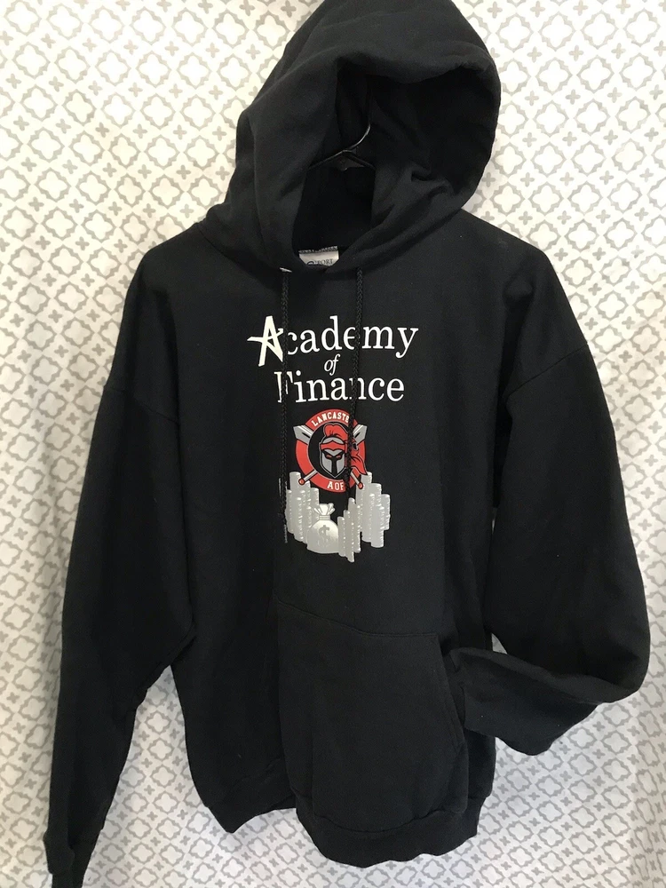 Show your school spirit with this Lancaster Academy of Finance hoodie. The black pullover hoodie features the school's name and Y2K-inspired design, perfect for any student or fan. Available in size large, this comfortable hoodie is great for everyday wear. Represent your favorite school in style with this Lancaster Academy of Finance hoodie. Excellent condition Very gently used worn less than 5 times Fast shipping