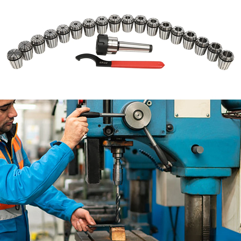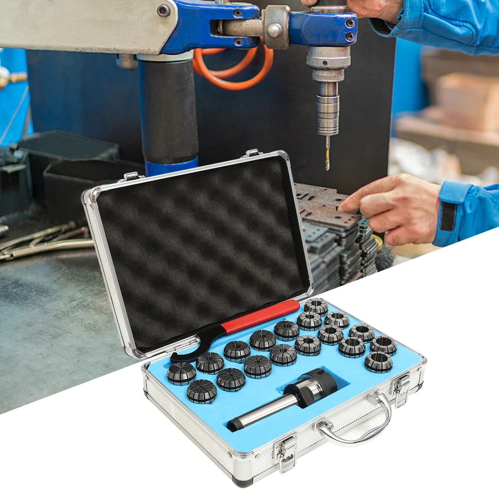 Collet 18Pc/Set Shank Chuck Tools+Box Fit Milling Machine/Lathe/Drilling Description The collet chuck set is made of high-quality steel, which has excellent strength and wear resistance . With a sturdy carrying case, it can be carried to any workplace. In addition, 18 collets of different specifications can meet different milling or drilling needs, and they will become your good helper. Key Features Build to Last: High-toughness steel and aluminum alloy combined with a hardening process give this item excellent durability, good wear resistance , corrosion resistance, and resistance to deformation, making it suitable for your heavy-duty work. High Accuracy: The serrated design and precise card slot can avoid deviation during the working process, ensuring smooth milling and improving its accuracy(0.0006"). Complete Kit: The 18 different sizes of collets are highly versatile, allowing you to change to different sizes for different job requirements. In addition, a spanner and collet holder are included for more convenient use. Thoughtful Design: EVA foam inside the case can keep collets organized and separate without slipping and damaging. Wide Clamping Range: The large clamping range ( 0.08-0.79in ) reduces the number of collet changes and increases productivity. Easy to Carry and Organize: All collets, the collet chuck, and the spanner are included in the customized aluminum alloy carrying case for easy storage and organizing without fear of them falling out, and you can easily carry them to any working location. Effortless Cleaning: With the smooth surface and simple structure, you just need a wet rag to wipe the dirt from this product. Guaranteed Customer Service: We aim to provide quality products and services. If you have any problems, please feel free to contact us. We will reply and solve the problem for you as soon as possible. Details Rounded Edges: The rounded edges around the carrying case not only protect you from accidental scratches during use but also enhance the aesthetics of the product. Clear Marks: Clear size markings allow you to quickly find the desired collet and save time. Precision Thread: Standard M12 thread ensures a sturdy connection and is not easy to fall off. Application It is suitable for professionals and hobbyists demanding milling and drilling applications and be used for clamping drills, milling cutter, end milling cutter, reamer, and straight shank tools. It is used for MT3 ER32 M12 special machine tool. Specifications Material: Steel, Aluminum Alloy Style: Modern Process: Quenching Hardness: 40-50HRC Model: MT3-E32 Color: Silver Number of Collets: 18 Thread: M12 Accuracy: 0.015mm/0.0006" ER32 Collet Chuck Size(D*H): 25*40mm/0.98*1.57in ER32 Collet Chuck Handle Diameter: 23.8mm/0.94in ER32 Spanner Length: 205mm/8.07in Clamping Range: 2-20mm/0.08-0.79in Carrying Case: 27*20*15cm/10.63*7.87*6.3in Package Size: 33*18*7.5cm/12.99*7.09*2.95in Gross Weight: 4.14kg/9.13 1bs Net Weight: 4kg/8.82 1bs Package Included 1* MT3 Shank ER32 Collet Chuck 1* E32 Spanner 1* 18PC ER32 Collet Set 1* Carrying Case Notes Before inserting the collet into the milling, the collet must be assembled into a clamping nut. Before using this tool, please measure tool deflection, tool deflection accuracy exceeds 0.0004-inches, please correct before cutting. The tool extends the length of the chuck as short as possible, the tool extends the amount of time as longer as possible. If extended, please adjust the speed, feed rate, or cutting amount. If it has abnormal vibration or sound, please reduce the spindle speed and depth of cut to improve the situation so far. Please allow the slight color difference caused by the shooting light and 1-3cm error due to manual measurement, and make sure you do not mind before you order. Payment Delivery details Terms of sales About us Contact us Payment We accept ebay payment 。 Fees such as import duties, taxes are not included in the item price or shipping costs. These charges are the buyer's responsibility. Delivery details Shipping: 2-9 working days to: USA Terms of sales We maintain high standards of excellence and strive for hundred percent customer satisfaction. Feedback is very important to us. We hope that you contact us immediately before you give neutral or negative feedback, so that we can address your concerns. It is impossible to address issues if we do not know about them! About us Your satis faction is our ultimate goal. We work hard to earn your trust and future business. Our certified technicians have tested each item before shipping. The unit comes with 1 year limited warranty on all manufacturing defects. a) If you receive a defective item, you may return it or ask for a discount. Please contact us within 14 days after you receive the package. b) What you returned must be intact and in its original packaging as re? u. Customer is responsible for shipping costs of the returned item. c) We will cover the cost of shipping back t with the shipping rate indicated in the registration page. We will send you a new unit or refund the full payment you paid. Thank you. Contact us Business Hour Business Hour: Monday To Friday: 8:30 AM to 5:00 PM (Beijing China time) Due to time zones, our reply to your questions may not be immediately. But within above working time, we will reply your email within 24 hours. If it's non-workdays, please kindly be patient and wait till Monday. Please contact us with ebay message. Please feel free to contact us if you have any questions. Monday To Friday: 8:30 AM to 5:00 PM (Beijing China time) Due to time zones, our reply to your questions may not be immediately. But within above working time, we will reply your email within 24 hours. If it's non-workdays, please kindly be patient and wait till Monday. Please contact us with ebay message. Please feel free to contact us if you have any questions. On Jan 2, 2025 at 18:48:58 PST, seller added the following information: