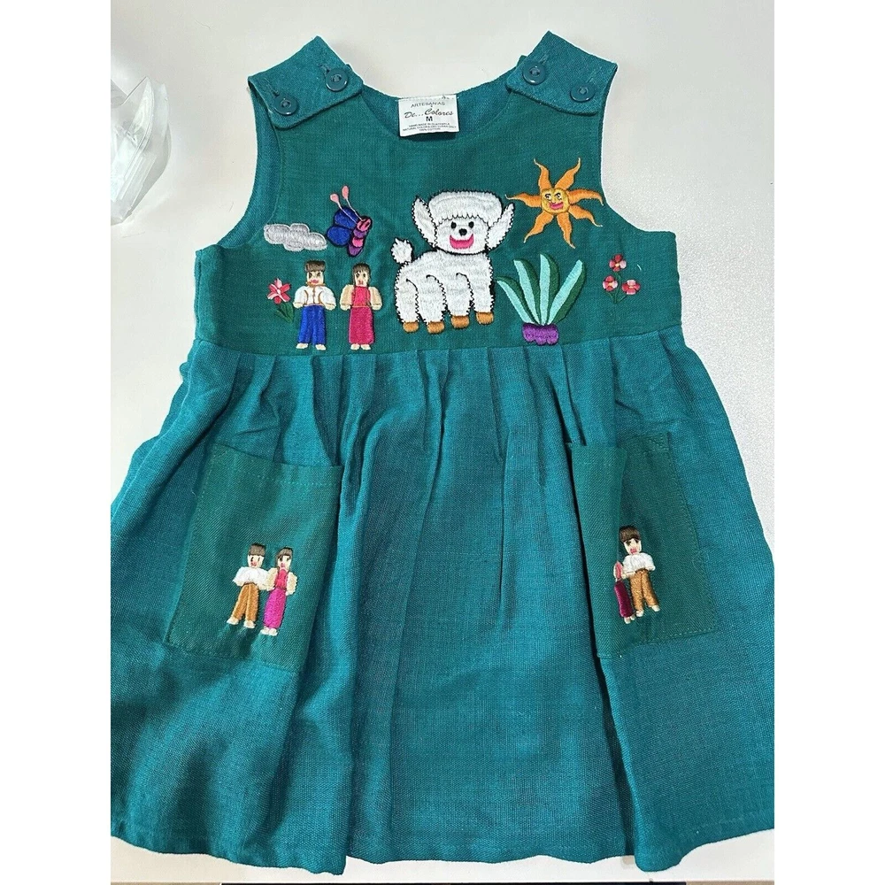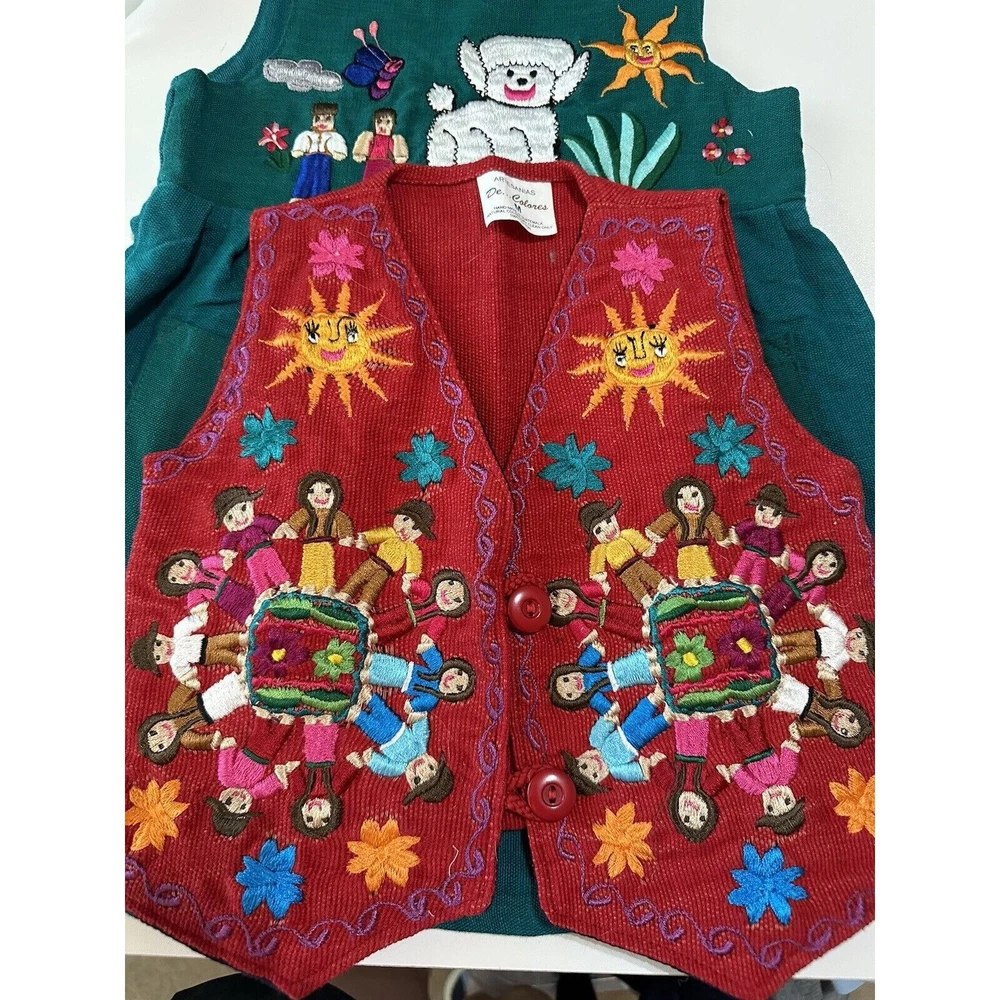 Colombian Vintage 80s hand embroidery girls matching Dress And Vest set size 5/5 Smoke free home VGUC