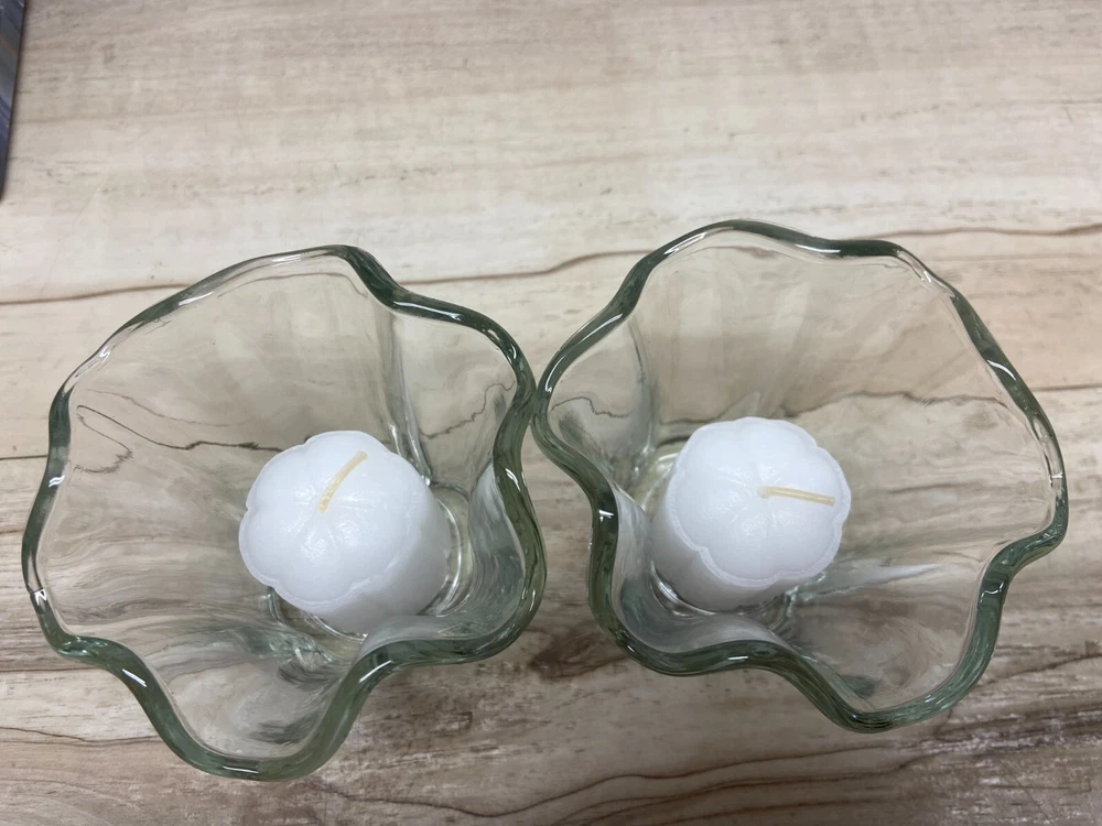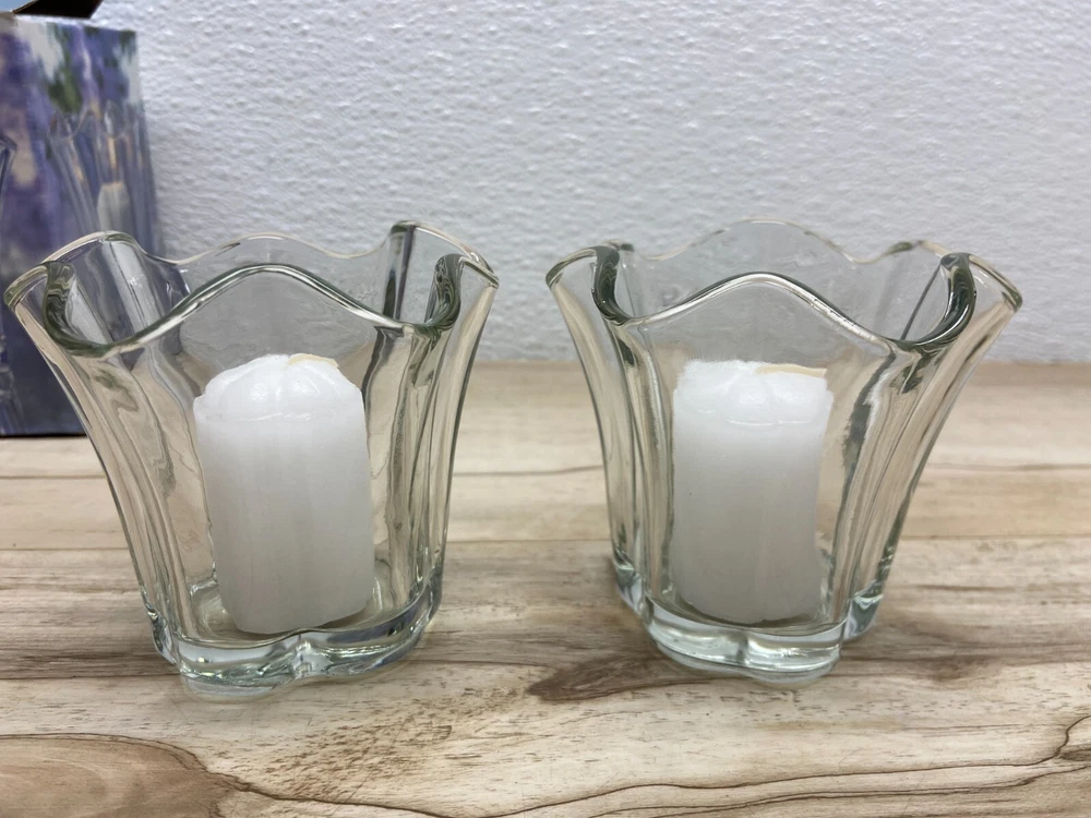 Colony Ambiance 4 Piece Votive Candle Set Clear Glass Flower Cups Candleholders