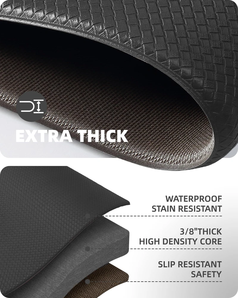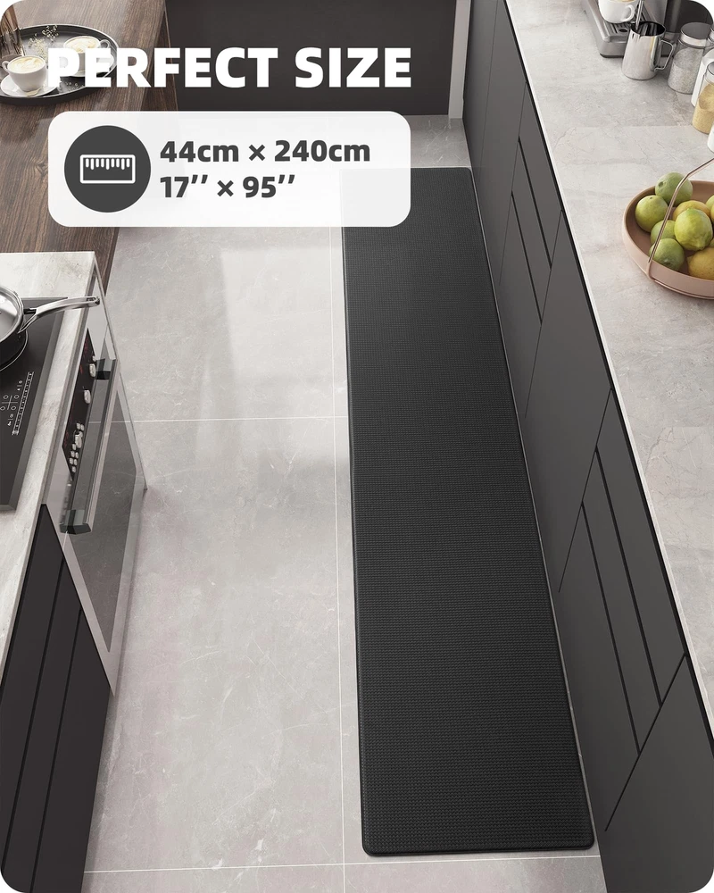 Color&Geometry Kitchen Rugs, Kitchen Runner Rug Kitchen Floor Mat, Cushioned Anti-Fatigue Kitchen Mat, Non Slip Waterproof Comfort Standing Padded, Memory Foam Kitchen mat, 17"x95", Black UNIVERSAL AND HIGH-QUALITY: These kitchen rugs are 17"x29"/17"x59"/17"x79"/17"x95"/24"x87"/24"x94" in size and come in five matching colors, and the thickness is 1/30 inch. These two different sizes make it suitable for most kitchen areas, and you can use either according to your needs. In addition, our kitchen rugs made from high grade materials, which is environmental friendly, non-toxic and not easily worn out by frequent use. CUSHIONED SUPPORT: The design of this memory foam kitchen comfort mat is ergonomic and endure long periods of pressure, It helps reduce the stress you put on your joints and stops overworking your muscles. Anti-fatigue mats are good options for anyone who spends a significant amount of time standing in front of their kitchen sink or counter. If your mother works in the kitchen for a long time, our anti fatigue mats for kitchen floor will be the most perfect mothers day gifts. WATER RESISTANT AND NON-SLIP: Ultra anti-slip backing and Beveled edge with anti-curl prevents tripping, provide safe for your family. Nonslip PVC Bottom is manufactured so that they do not move around like other mats while a slight texture on the top makes them slip resistant. Make sure the floor is clean and dry before use. EASY TO CLEAN: The surface of this kitchen mat set is oil-proof and waterproof, simply wipe clean with a damp cloth or sponge, use any common household cleaner or sweep clean of dirt and dust, save your time and energy. WHAT YOU GET: A beautifully packaged, high-quality kitchen mat and 100% satisfaction. Attention: If the mat you receive has creases due to transportation, please lay it flat for 1~2 days to remove the creases on the carpet before using it for the first time, or wash and dry the kitchen mat. For any other questions, please contact us, we will provide you with the best solution ASAP. Shipping We offer FREE shipping on all orders! We use a selection of shipping services such as UPS, FedEx, USPS etc. We only ship to the lower 48 states, no APO/FPO addresses or PO Boxes allowed. Local pickups and combined shipping options are not provided at this time. Return You can return a product for up to 30 days from the date you purchased it. Any product you return must be in the same condition you received it and in the original packaging. Please keep the receipt. Payment We accept payment by any of the following methods: PayPal Please pay as soon as possible after winning an auction, as that will allow us to post your item to you sooner! Feedback Customer satisfaction is very important to us. If you have any problem with your order, please contact us and we will do our best to make you satisfied. Contact Us If you have any queries, please contact us via ebay. We usually respond within 24 hours on weekdays. Please visit our eBay store to check out other items for sale! Thank you for shopping at our store.