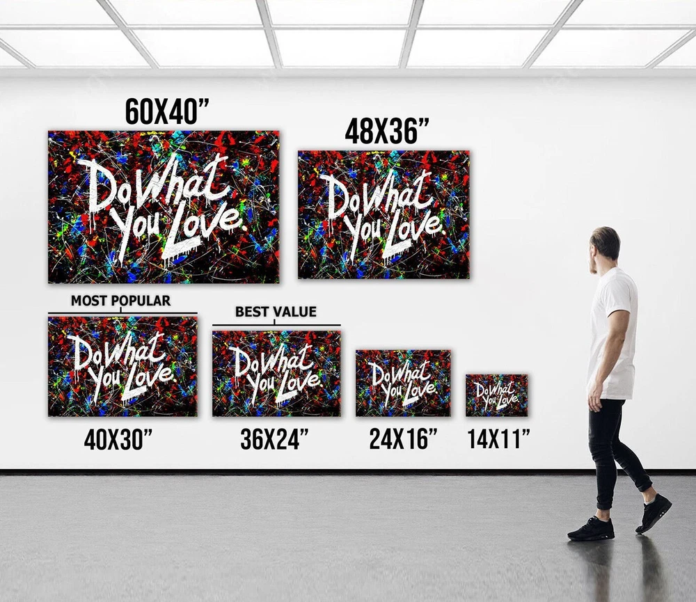 Colorful Abstract Canvas Wall Art BANKSY Do What You Love CANVAS Graffiti Print **************************************************************************************************************** **We Stand by Our Products** We are native US factory, all of our products are made by professionals and shipped fast. Just try our framed Canvas Wall Art, a wonderful decoration for your walls or a perfect gift choice for your loved ones. **High Definition Printed** High definition picture, photo prints on thick high quality canvas to create the look and feel of the original nature and masterpiece. **Attention to Detail** Our in-house design team is constantly checking the quality and detail of every artwork, we provide to ensure an excellently produced product for whatever occasion you need them for. ❤ When you find art you love, you'll love your space more! DivineMaster exist so you can have the art you love ❤