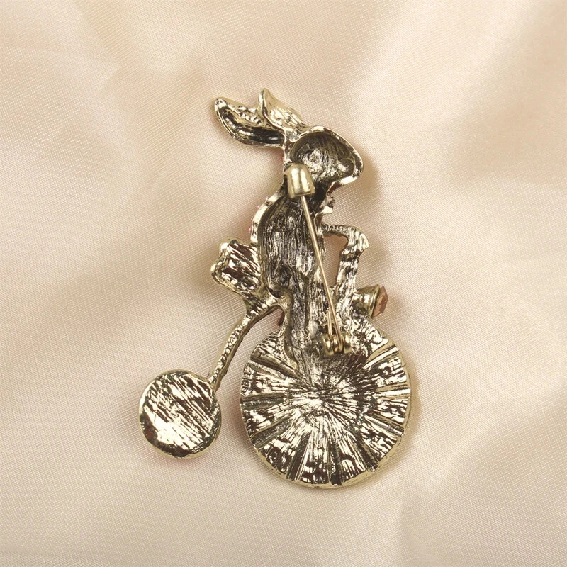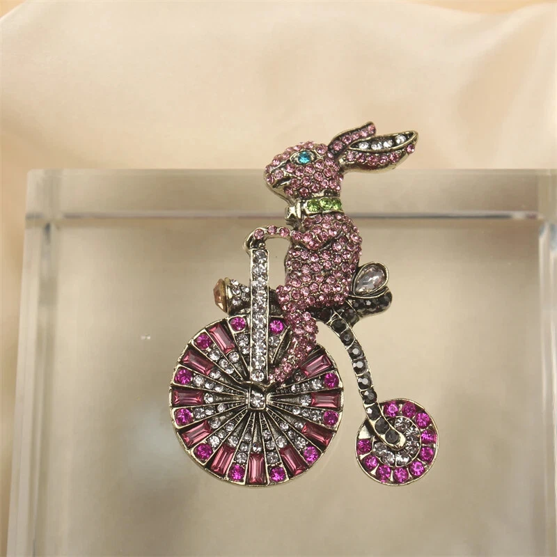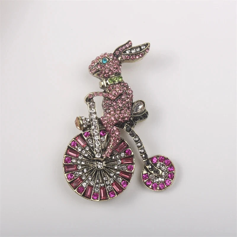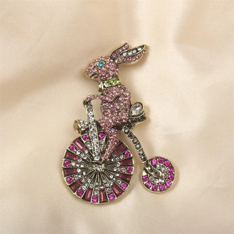 Colorful Bunny Bike Pink Sweet Vintage Brooch Luxury Rhinestone Animal Pins
