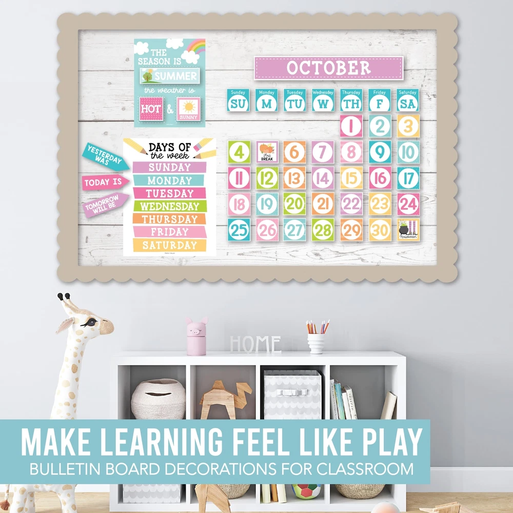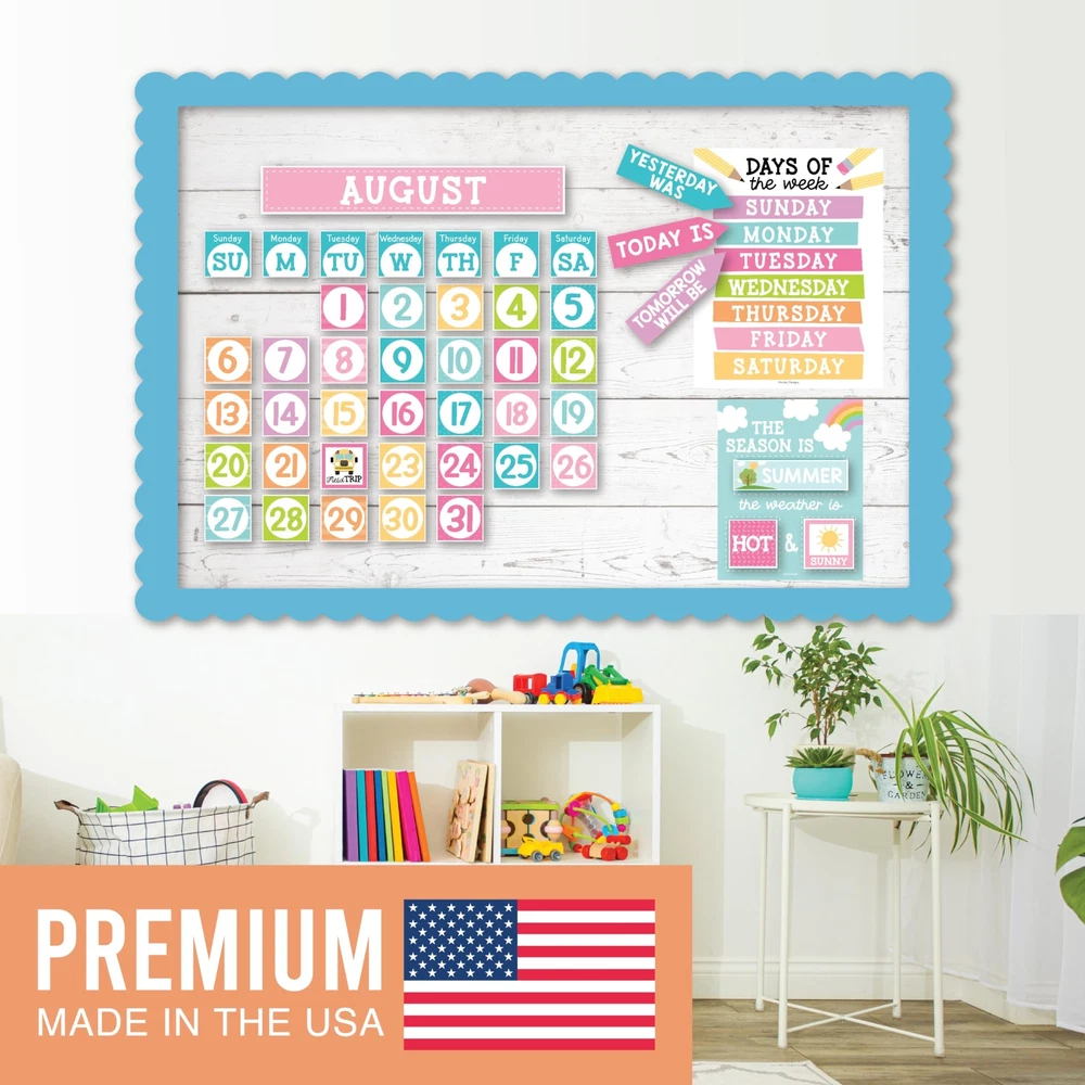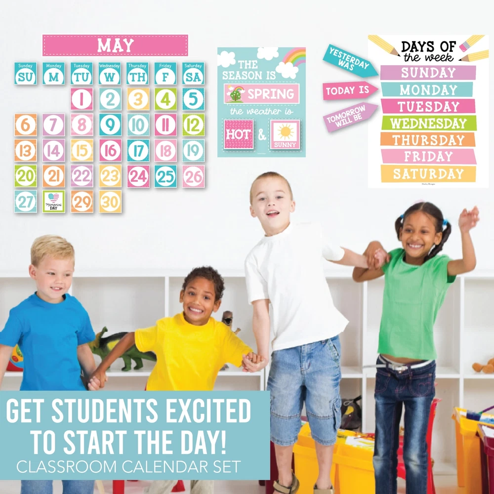 Looking to add some excitement to your classroom? Look no further than these classroom bulletin board sets! They're not only fun and engaging, but also an excellent circle time activity that fosters a lifelong love for learning. Package Includes: 98 Individual Calendar Pieces 1 - 11x14" Days Of The Week Poster 1 - 8x10" Weather Chart This calendar bundle includes everything needed to teach days of the week, months, weather, and more! Our calendar poster for classroom also captures kids' attention with their bright colors, so your students can learn (and retain!) new topics in record time. And unlike other classroom calendar numbers that are made overseas, our class calendar/classroom themes decoration sets are USA made with thick cardstock, so these classroom decor theme sets can be used year after year. Give students daily calendar practice by using this as a simple rainbow color voice level chart, pastel yellow green bulletin board months of the year, blue red doodles preschool classroom must haves, weather chart for preschool, school calendar for classroom elementary teacher must haves, calendar classroom must haves for teachers elementary, class calendar numbers for classroom, teacher calendar for classroom decor theme sets, homeschool calendar for school, kindergarten calendar for classroom decorations for teachers elementary, calendar set for classroom elementary classroom must haves, bulletin board decorations for classroom essentials for teachers elementary, calendar preschool classroom must haves, kindergarten classroom must haves, prek classroom essentials, 2nd grade classroom must haves. Our family-owned business wants to help you create a fun learning space. If you have questions about our classroom must haves, classroom essentials, teacher supplies for classroom, or our preschool classroom supplies, please don't hesitate to reach out. If You’re Looking To Make Circle Time Educational And Fun; Then you need this modern boho calendar set for classroom elementary; While other calendar classroom are made overseas, our preschool classroom calendar set is proudly USA made Get Kids Excited About Their Day; You'll receive 98 individual calendar pieces, 1 - 8x10 weather chart, and 1 - 11x14 days of the week poster; Inspire a love for learning with this muted tones school calendar for classroom elementary/teacher calendar for classroom Capture Attention And Boost Focus; This bright colorful calendar numbers for classroom helps grab and hold kids' attention; Skyrocket learning speed and retention with this classroom decorations, classroom wall calendar, months of the year bulletin board set Sharpen Critical Thinking Skills; Use as a bohemian homeschool calendar, kindergarten calendar for classroom, voice level poster for classroom, weather chart for classroom, months of the year for classroom, bulletin board decorations for classroom We are so confident in the quality of our calendar chart for classroom that we offer a lifetime manufacturer warranty; If you have any issues with your preschool bulletin board sets, we will replace them with a smile; Our family-owned business is here to help you create a positive learning environment where kids can succeed now and in the future; Why wait, get your calendar days for classroom today