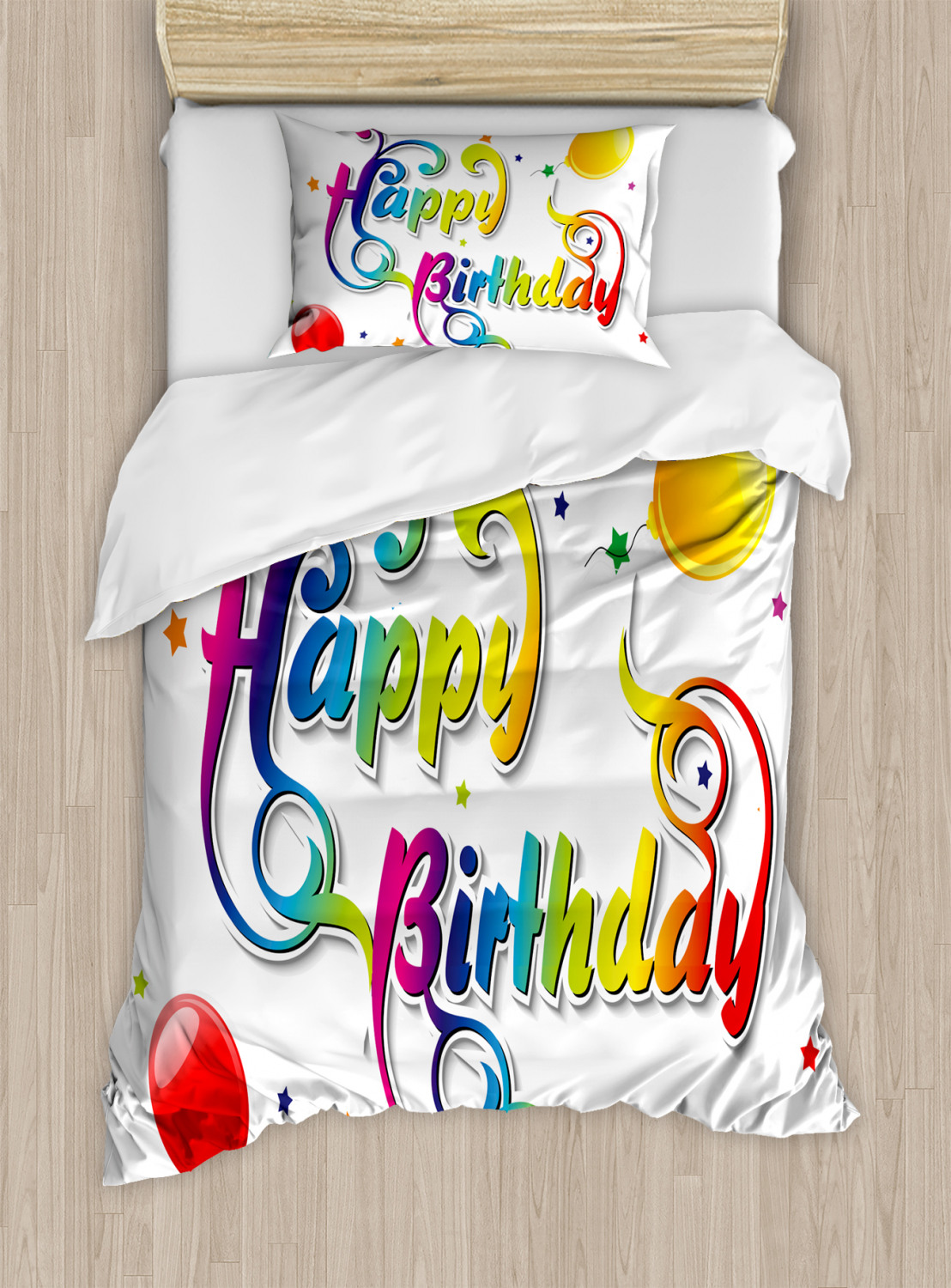 Colorful Duvet Cover Set King Size Birthday Words Floral with 2 Pillow Shams Time to embrace modern looks, feel-good fabrics, and high-quality materials! King, queen, or twin - these 3 pcs duvet cover sets will work in any bed for any season! Woven from 100% brushed microfiber fabric, our duvet cover collection is constructed for maximum strength and ultra comfort only for you and your beloved ones. All you need to do is to simply put our duvet cover on your comforter and secure it with zipper closure, and enjoy your new bedding set! MEASUREMENTS: KING SIZE SET: Duvet Cover (104" W X 88" L) and 2 Pillow Shams (36" W X 20" L). QUEEN Size Set: Duvet Cover (88" W X 88" L) and 2 Pillow Shams (30" W X 20" L). Twin Size Set: 1 TWIN Duvet Cover 68" X 88" + 1 Pillow Sham 30" X 20". The duvet cover FEATURES hassle-free hidden zipper and the pillow shams have an envelope closure. Please note that COMFORTER NOT INCLUDED IN THIS SET. This only duvet cover, allowing you to protect the comforter/duvet insert from dust, mites, and other stains. WRINKLE FREE - The microfiber material creates ultimate softness and comfort, also provides wrinkle, fade, and shrink resistance when properly cared for. Very durable and sustainable material that will not endanger your health or the environment, either. No chemicals used, No dye substance harming the health of you or your family, %100 microfiber recyclable environmentally friendly fabric. LOW MAINTENANCE: Machine washable in cold water. Suitable for tumble dryer use on low heat. Can be ironed on medium heat when necessary. Do not bleach. Choose your style between thousands of different and creative patterns. Or simply find your perfect gift idea ever for housewarming, birthday, bridal shower, Christmas, Mother’s Day, and newlyweds… You can find a theme for everybody and every interest in our Ambesonne Store. The images we display have the most accurate color possible but, due to differences in pc monitors, there can be slight color differences between the product and the image. Due to manual measurement, please kindly allow 1-2 cm discrepancy. The Duvet Cover and Pillow Shams are printed on the FRONT SIDE ONLY, the back of them are PLAIN WHITE-COLORED. This is ONLY the Duvet Cover, sold WITHOUT the Comforter.