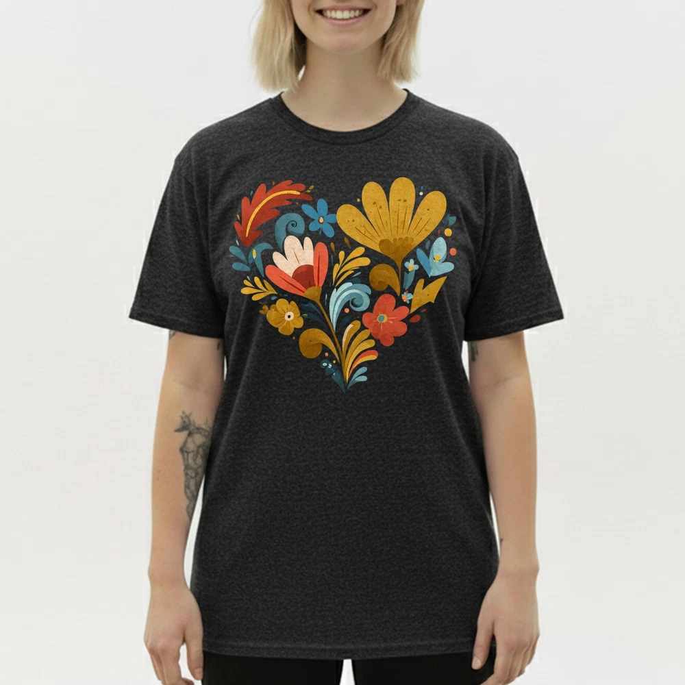 $ 7.52Floral Heart Faux Embroidery Style Retro Vintage Folk Art Women Gift Tee