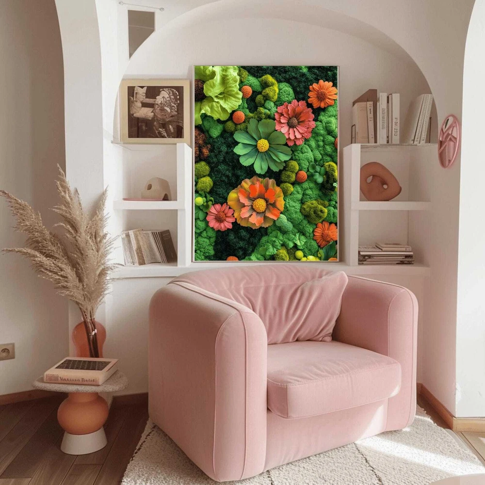 Colorful Floral Moss Wall Art Print Large Green Moss Botanical Prints Nature