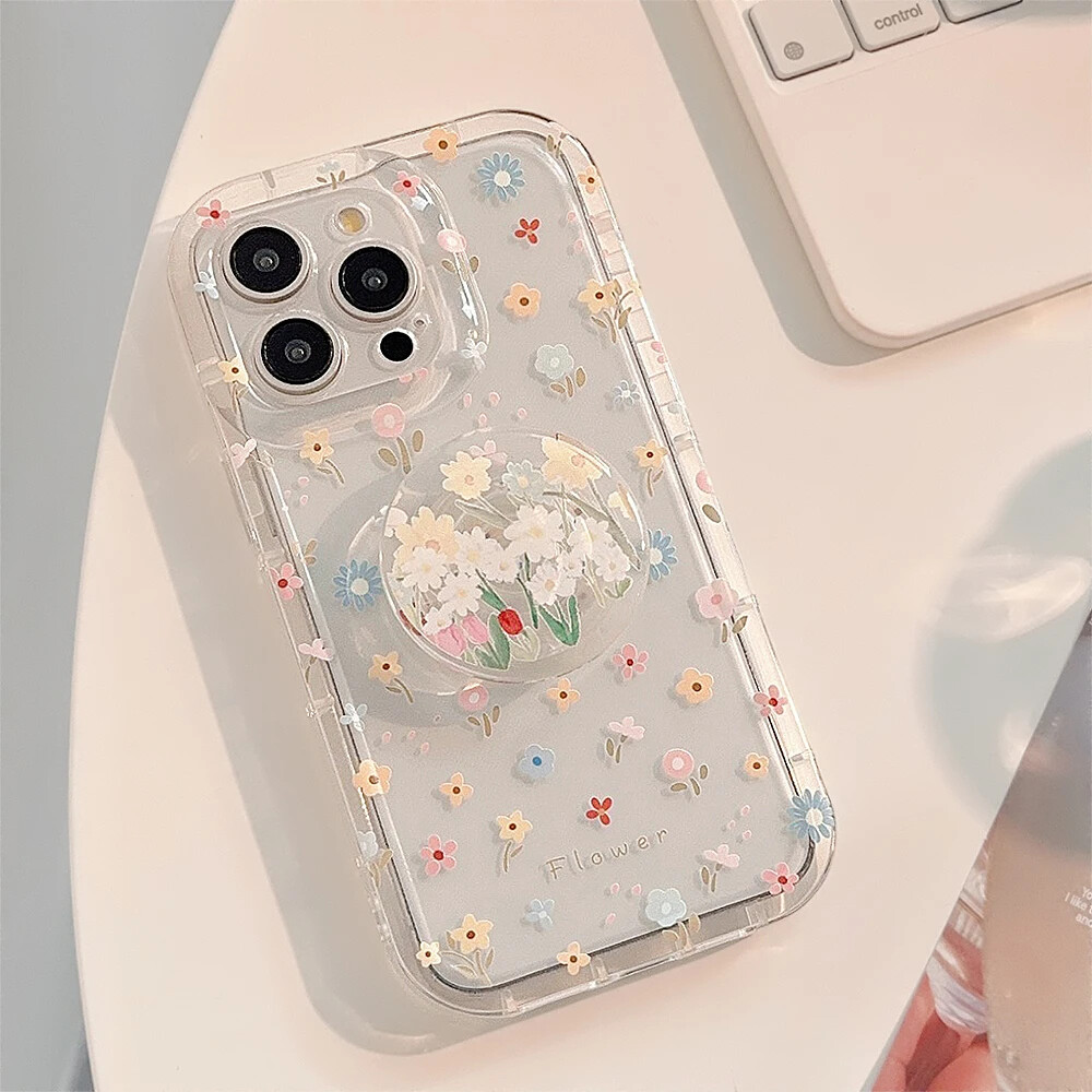 Colorful Flower Stand Soft Case for iPhone 15 14 13 12 Pro Max 11