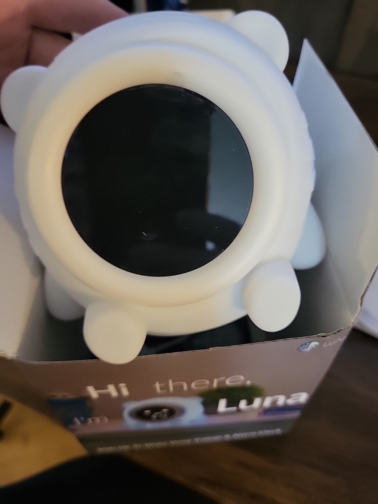 Kids alarm clock, night light sound machine . dimmable face and child safe silicone