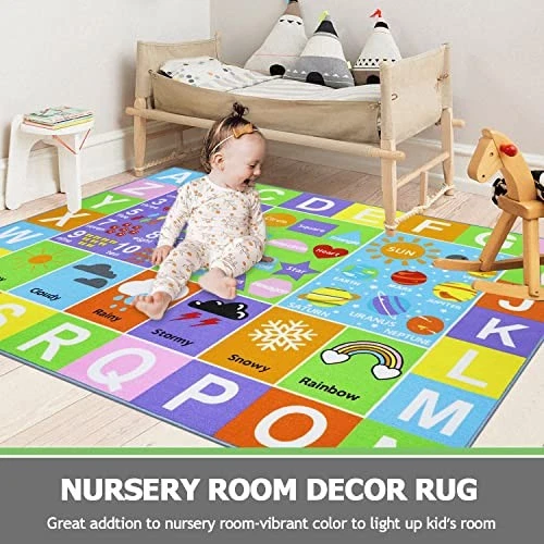 Return Policy Fast Delivery Trusted seller Kids Rug for Learning Alphabet,Numbers,Shapes,Weather,Planets,Kid Area Rug,Non Slip Play Mat for Children Playroom,Classroom,Bedroom,Toddler,Nursery,5'0 x 6'6Feet Product Description 【Large Size Kids Rug 5'0" x 6'6"】: kids carpet measured about 5' x 6'6" , which are enough for 2-3 children playing,crawling and learning together,providing comfortable play time and perfect protection for your children. 【Colorful Educational Area Rug】: Richer and more interesting patterns printed on kids rug : ABC alphabet,numbers (different numbers correspond to different cute patterns to increase the fun of learning),shapes,different weather conditions and fantastical outer space planets.Vivid pattern and bright color will attract kids attention to inspire baby’s curiosity and promote early education. 【High Quality Materials and Easy Clean】: The rugs for kids room is made of high-quality nylon materials,the surface with machine woven dense loop texture is soft and comfortable,the back with TPR is non-slip, and the edges of the carpet are double-wrapped-durable and solid.It easy to clean,using vacuum to clean it regularly or machine washing to clean mat completely. 【Kid Rug of Multi-Scenario Use】:Add a nice color pop and kids will love learning and playing with friends,floor mats for kids bedroom,playroom,nursery room,classroom rug,living room,elementary school,preschool daycare kindergarten etc. 【How to remove crease】: T may be creases on kids carpet playmat rug due to folded package,Do not worry and just flatten with heavy objects patiently for 1 to 2 days or iron rug to remove crease. Shipping Returns Payment Shipping Shipping is FREE to all addresses other than APO/PO boxes in the lower 48 states. All our stock ships from US-based warehouses. Shipped via USPS or UPS (depending on location and package weight) Unless stated otherwise, all orders will ship within 24-72 hours of your payment being processed. Check our feedback to see the great reviews of FAST shipping we offer. Returns Seller does not accept returns Payment We currently accept payment via eBay managed payments only. Once payment is cleared, we will dispatch your shipment within 1-3 business days. Please refer to the "Shipping" tab for more information regarding shipping speed to your destination.