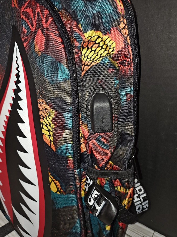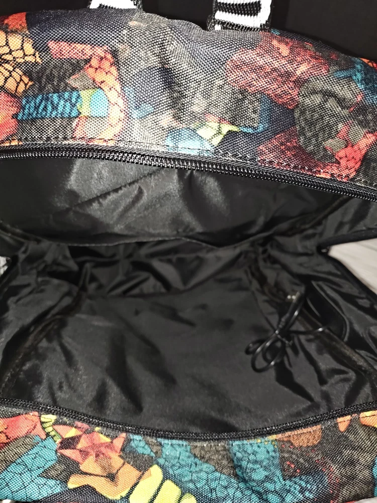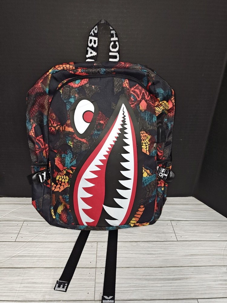 Kuchen & Bag Graphic Colorful Print School Travel Backpack With USB Connection. Has some wear from age and storage. See pictures. Sold as is.