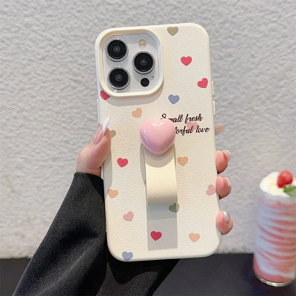 Colorful Love Heart Polka Dot Ring Holder Case for iPhone 15 14 13 12 Max