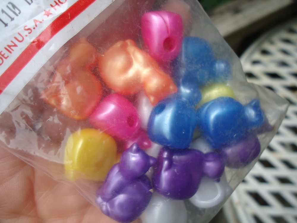The Beadery Cat Pony Beads Pearly Pink Blue Purple White Yellow Orange Novelty Kitty Cat Decorative Jewelry Making Beads. Vintage Unopened Made in USA NOS pack of 17