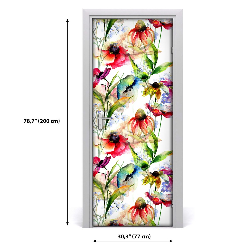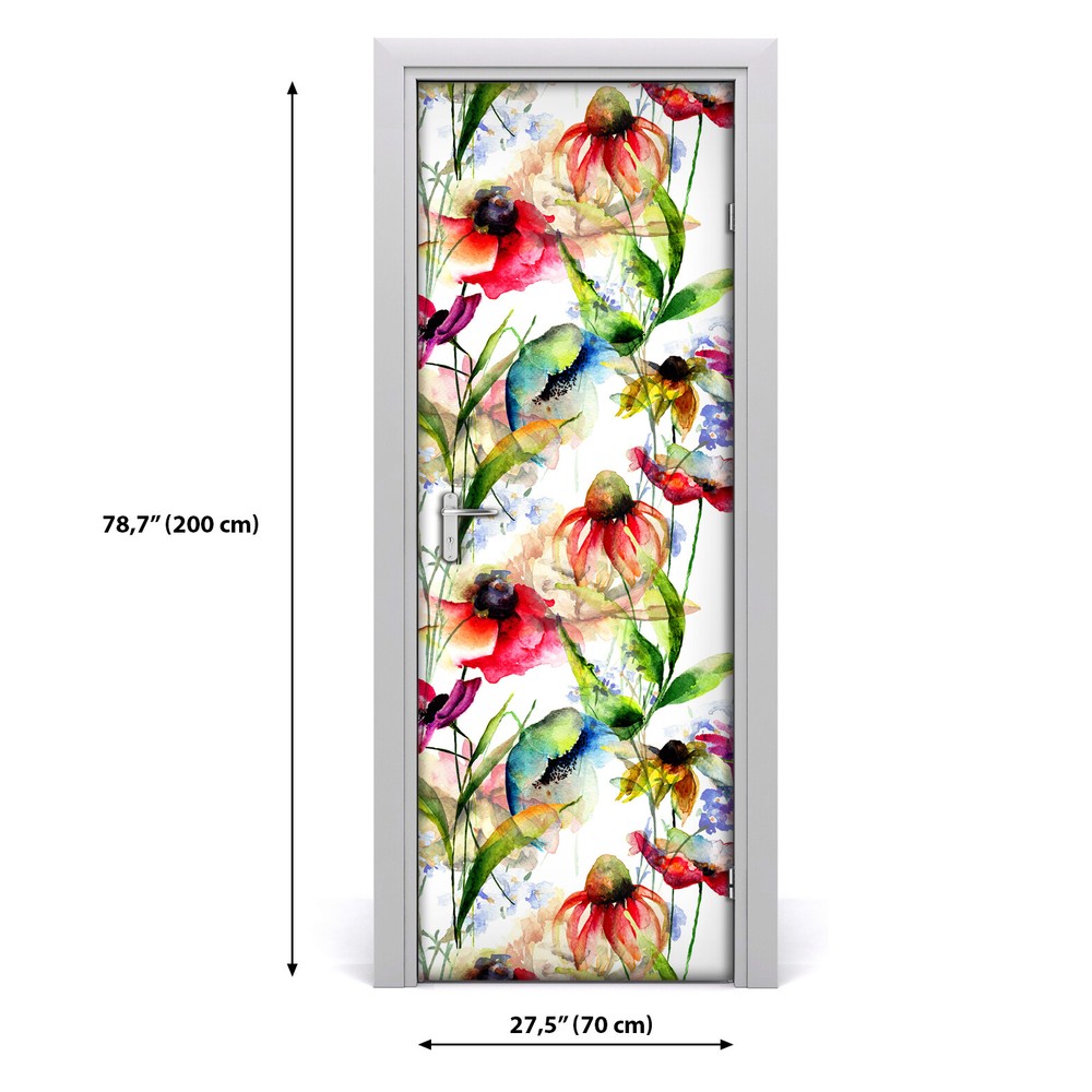 Bubble Free Door sticker Flamingo Watercolour Peel & stick Tropical Floral Decal