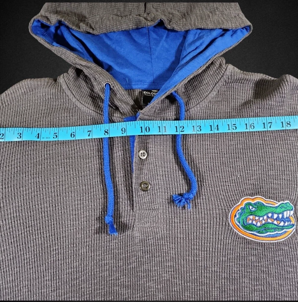 Show your support for the Florida Gators with this Colosseum long sleeve shirt. The gray Henley hoodie is perfect for any fan looking to stay warm and stylish. It features the team's logo and colors, making it a great addition to any collection. The shirt is made for men and is a size large. It's perfect for basketball games or just everyday wear. Get your hands on this NCAA licensed product today and show your love for the Florida Gators! If you like this item and would like to see more like it, please visit our ebay store. *RETURNS- Customer Satisfaction is important to us. Good communication is crucial for ebay sales. PRIOR to feedback, notify EZ Sales of any concerns using eBay messaging. Item must be returned in its original condition, with tags if applicable. BUYERS are responsible for return postage. Should the wrong item be shipped, EZ Sales will gladly refund the entire amount including return shipping.
