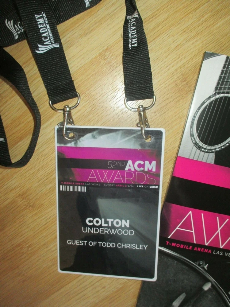 IN STOCK IMMEDIATE SHIP Colton Underwood Personal Badge + 2017 Academy of Country Music Awards Program Up for grabs is a celebrity pass and collectible program from the 2017 ACM Awards Original program book with full color glossy pages. *MINT CONDITION* SHIPPED WITH PROTECTIVE CARDBOARD See other items from this seller
