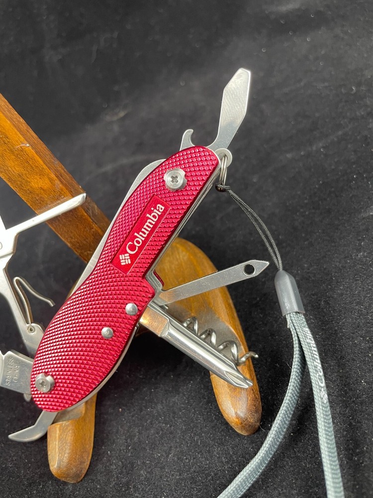 Columbia 10-function pocket tool is the perfect multi-tool for camping and hiking enthusiasts. With 10 different tools including a knife, scissors, medium screwdriver, cork screw, bottle opener, file, phillips screwdriver, and can opener. For Inventory - H19