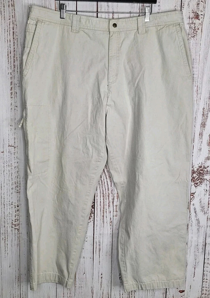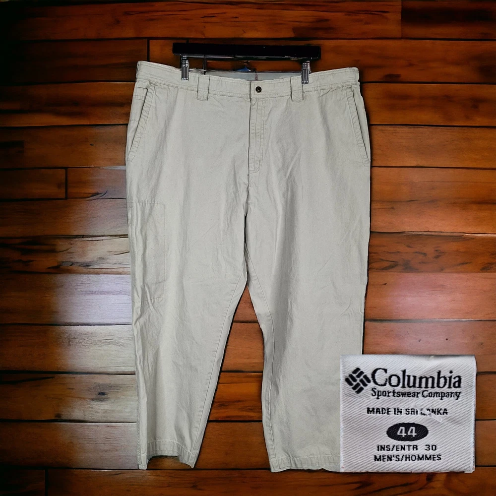 Columbia Cargo Pants Mens 44X30 Beige Zip Pockets Cotton Please check out the measurements before buying to insure fit. Pants Size on Label 44 Seam (Outer) 40.00'' Waist 43.00'' Waist- Crotch 13.00'' Inseam 29.00'' Everything ships within a day. Feel free to message me with any questions. Thank you very much. 2/12/24