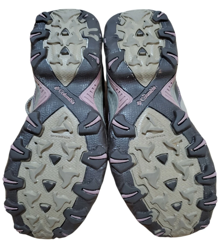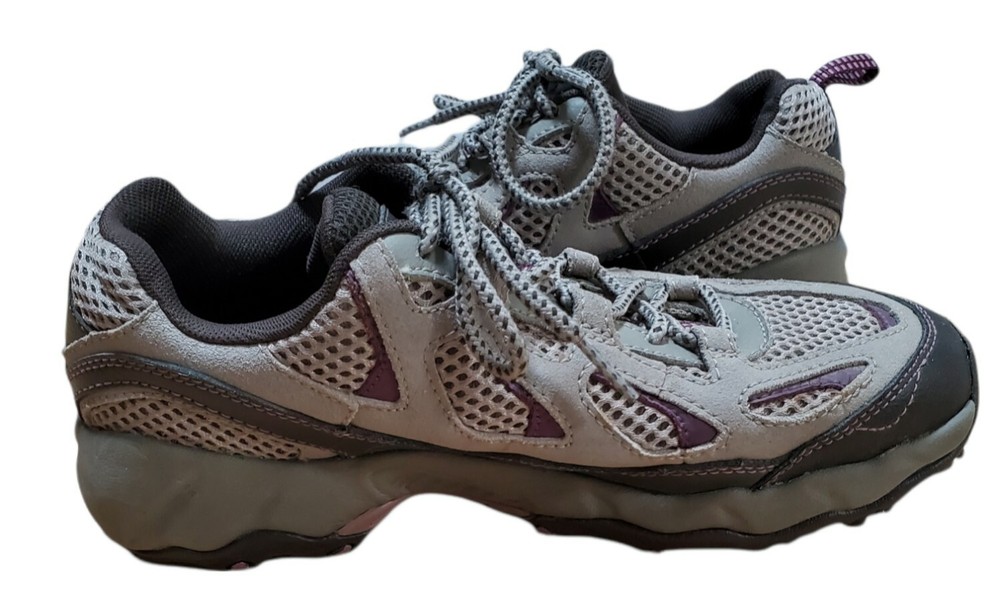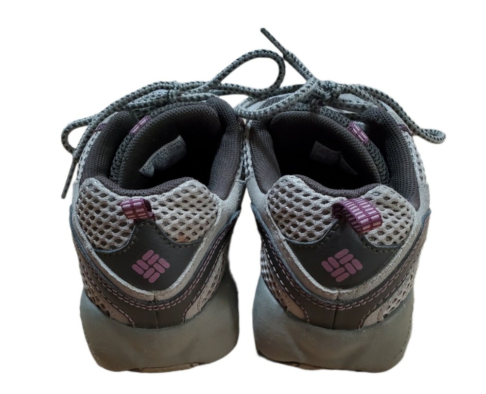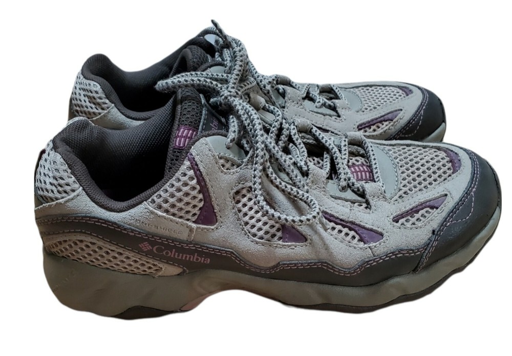 Columbia D Storm Hiking Trail Shoes Womens 7.5 Gray Purple Sneaker BL3564-221. Very Good Pre Owned Condition. One worn spot of on inner heel (see pictures).