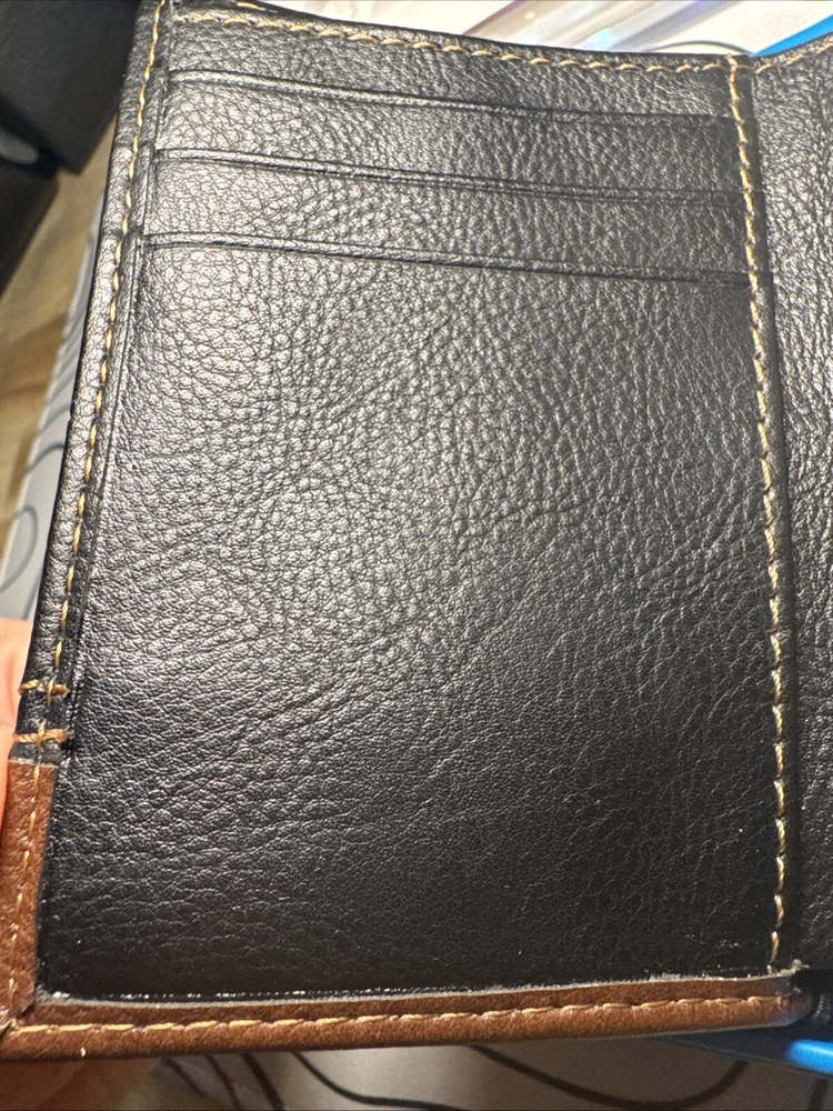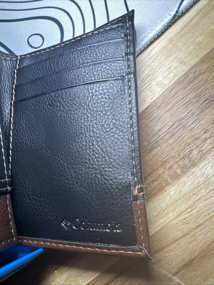 Columbia Men's Trifold Leather Wallet Black/Brown 31CP110038 Keep your cards and cash secure with the Columbia Men's Trifold Leather Wallet. The durable leather design, in a sleek black and brown combination, adds a timeless touch to your accessory collection. FREE DOMESTIC SHIPPING. Style code: 31CP110038 Brand: Columbia Style: Trifold Wallet Color: Black/Brown