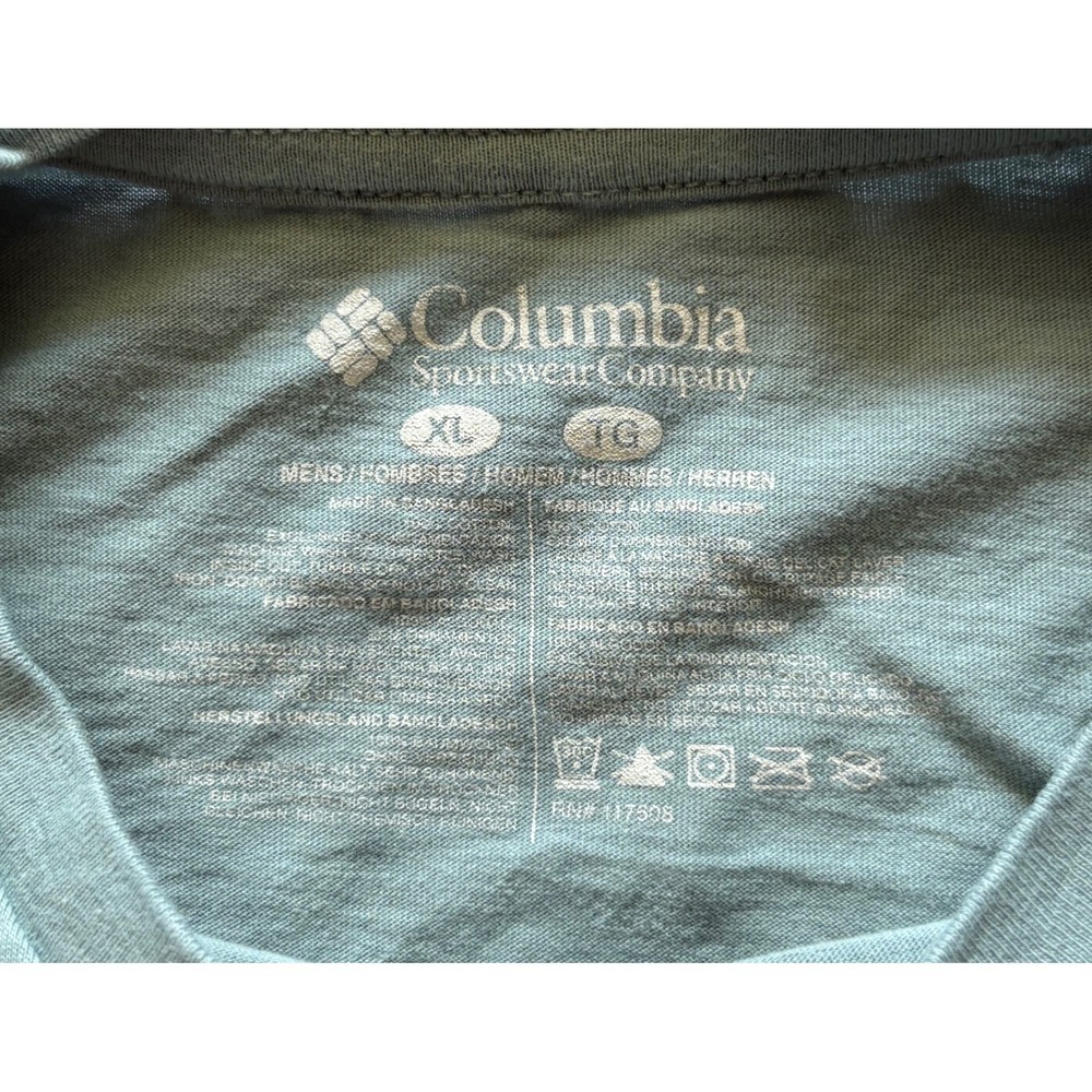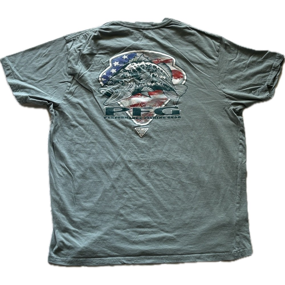 Columbia PFG (Performance Fishing Gear) T-shirt, a comfortable and stylish option for casual wear. Featuring a front logo and a large graphic on the back with a fish and American flag design, this short-sleeve shirt offers both visual appeal and a relaxed fit. Well-suited for outdoor activities, fishing trips, or casual everyday wear. Department: Men Theme: Patriotic, Fishing, Outdoor Fit: Regular Sleeve Length: Short Sleeve Type: T-Shirt Pattern: Graphic Print Features: Tagless, Quick Dry Neckline: Round Neck Material: Cotton Length: 27" Pit to Pit: 21" Keywords: Columbia, PFG, Performance Fishing Gear, T-shirt, Mens, XL, Extra Large, Graphic Tee, Fishing, Outdoor, Casual, Short Sleeve, American Flag, Fish