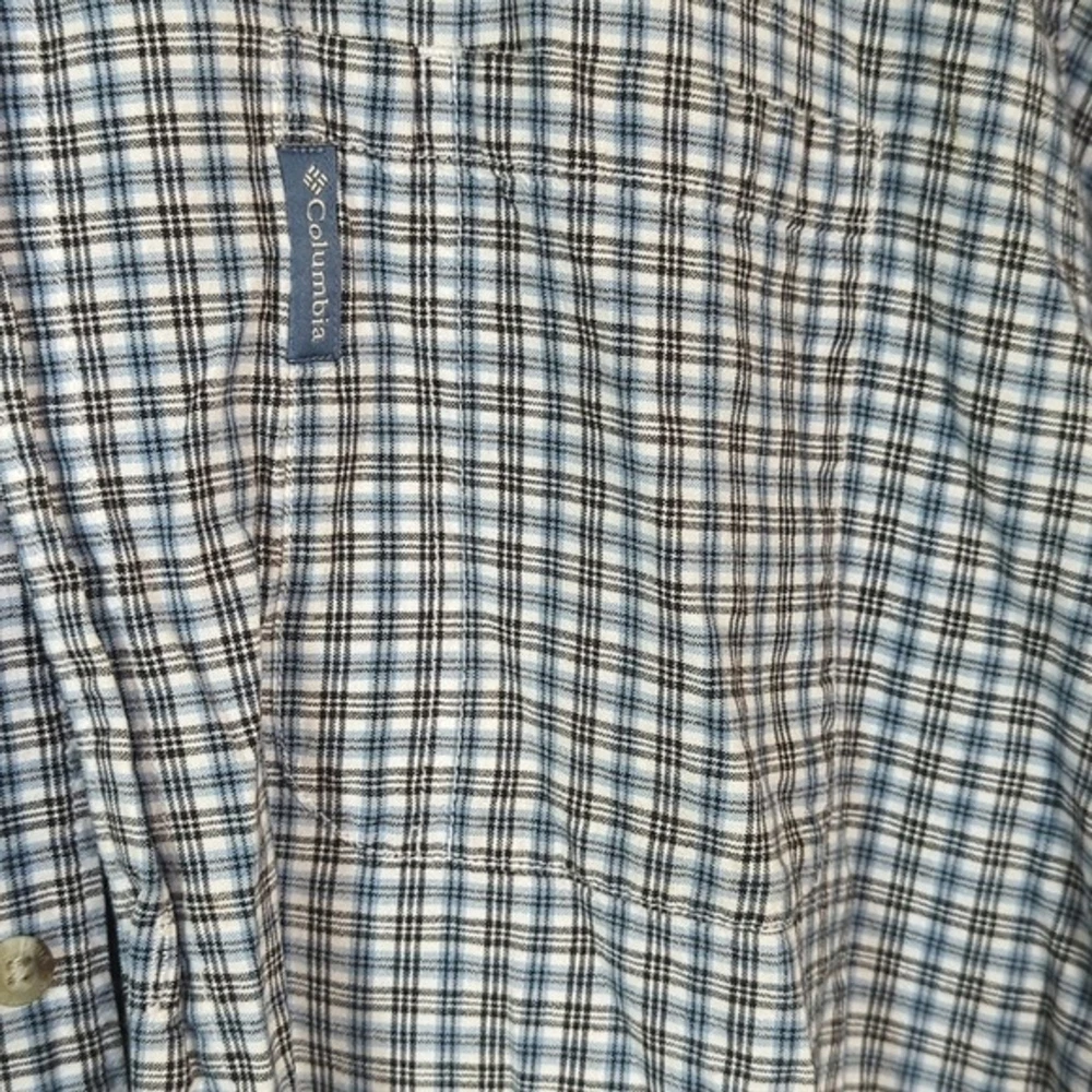 Columbia Sportswear size large blue white check plaid short sleeve 100% cotton full length button down single chest pocket excellent used condition measurements Armpit to armpit 23 length 28