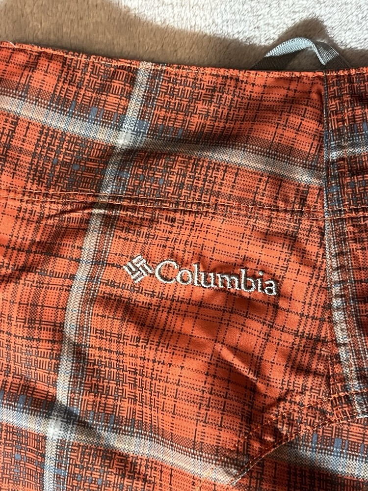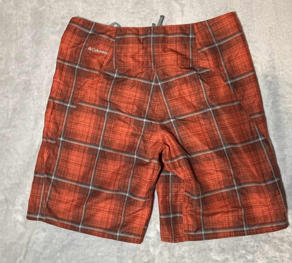 You are buying a pre-owned pair of Columbia Swim Shorts Mens 36 Orange Plaid Omni Shade Sun Protection Board Trunks. These Shorts have lite wear, no major stains or tears, working buttons and drawstring, plenty of life left. Measurements: Size: Men's 36 Waste: 36" Full Length: 21" Inseam: 9" Rise: 10" Ships Free with USPS Ground Advantage, Free Returns. Will Ship within 24 Hours of Payment.