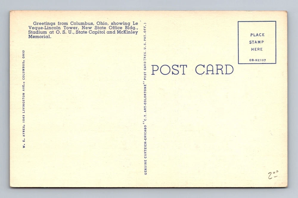 Country/Region of Manufacture: Unknown Region: Ohio Postage Condition: Unposted Type: Printed (Lithograph) Theme: Cities & Towns Unit of Sale: Single Unit Era: Vintage Original/Licensed Reprint: Original City: Columbus Country: USA Subject: Cities & Towns