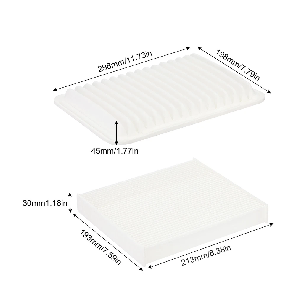 Item Description: 100% Brand New And High Quality. Directly replace and easily install. Please make sure the interchange part number matches the part you are replacing. Replace Part Numbers : 17801-0H050, 87139-07010 AF5649, C35667 Fitment : 2007-2017 Toyota Camry 4 cylinders 2009-2016 Toyota Venza 4 cylinders Package included: 1 Engine air filter + 1 Cabin air filter